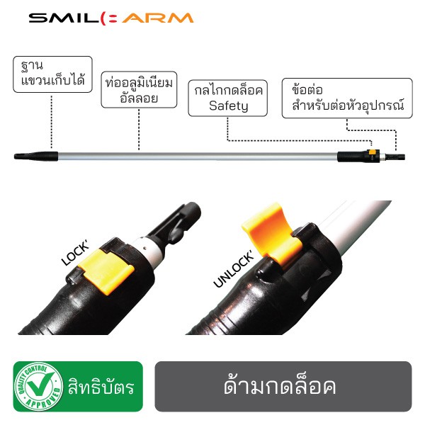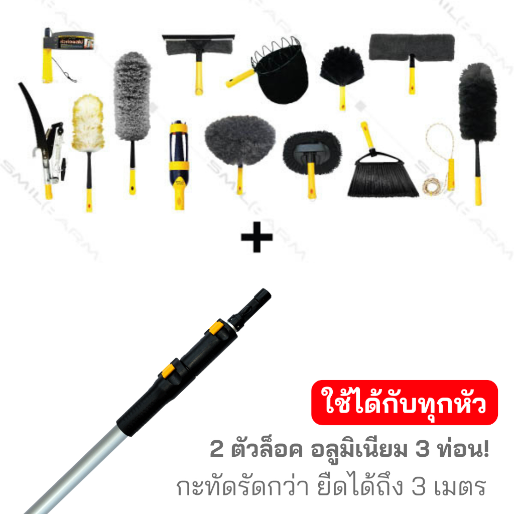 SmileArm® ด้ามกดล็อค 3 เมตร อลูมิเนียมแท้100% ใช้คู่กับหัวอุปกรณ์ ด้ามอเนกประสงค์ ยืด-หดได้ ไม่เป็นสนิม ส่งซ่อมได้