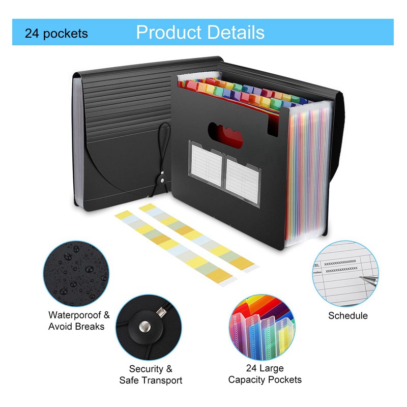 13/24 กระเป๋า A4 ขยายโฟลเดอร์แฟ้มเอกสารออแกไนเซอร์ที่เก็บกระดาษแบบพกพากระเป๋าแฟ้มหลายชั้นขยายกล่องแฟ้ม