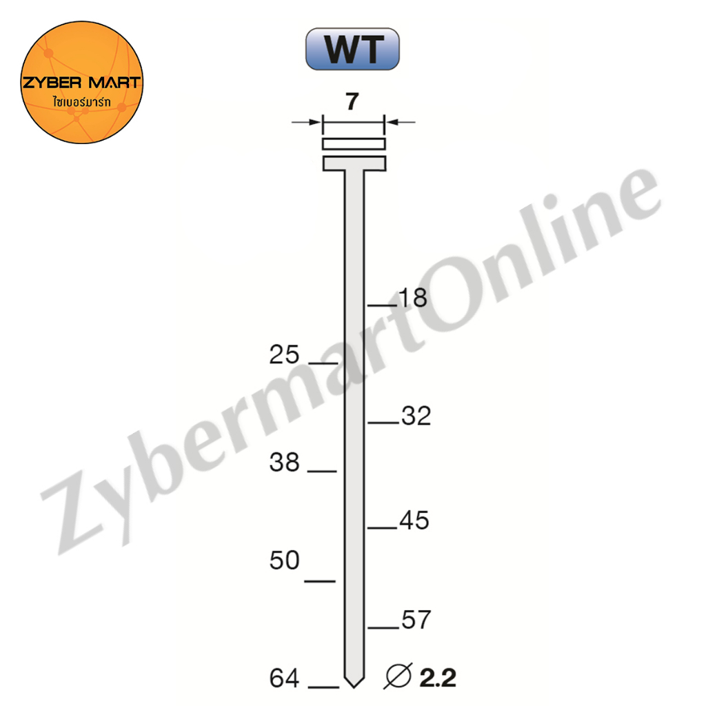 HI-TOP ลูกแม็ก ตะปู ยิงไม้ ไม้เนื้อแข็ง WT18 WT25 WT32 WT38 WT45 WT50 WT57 WT64 (กล่องละ 1,000 นัด) [Zybermart]