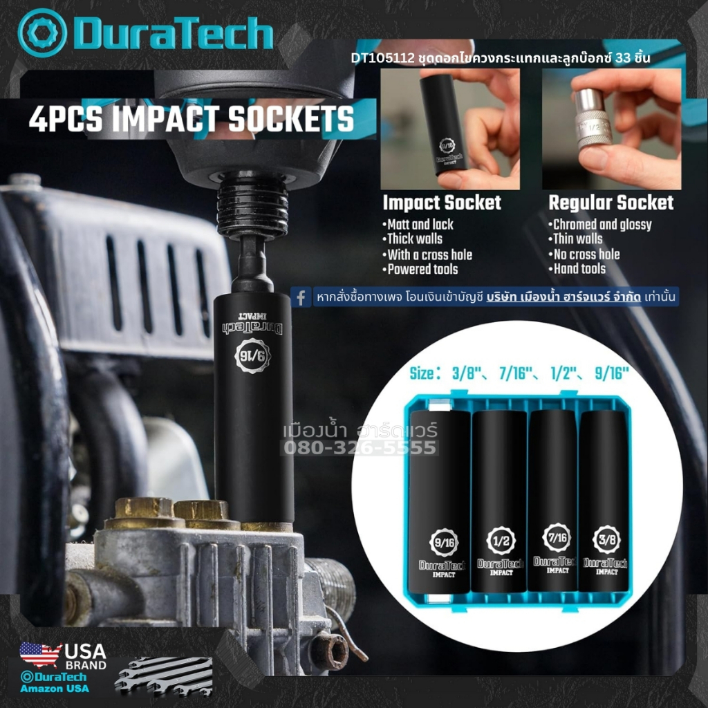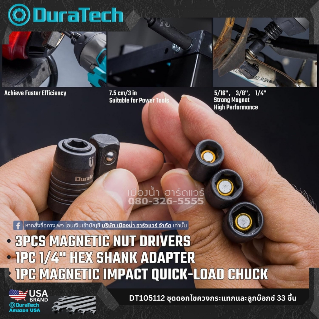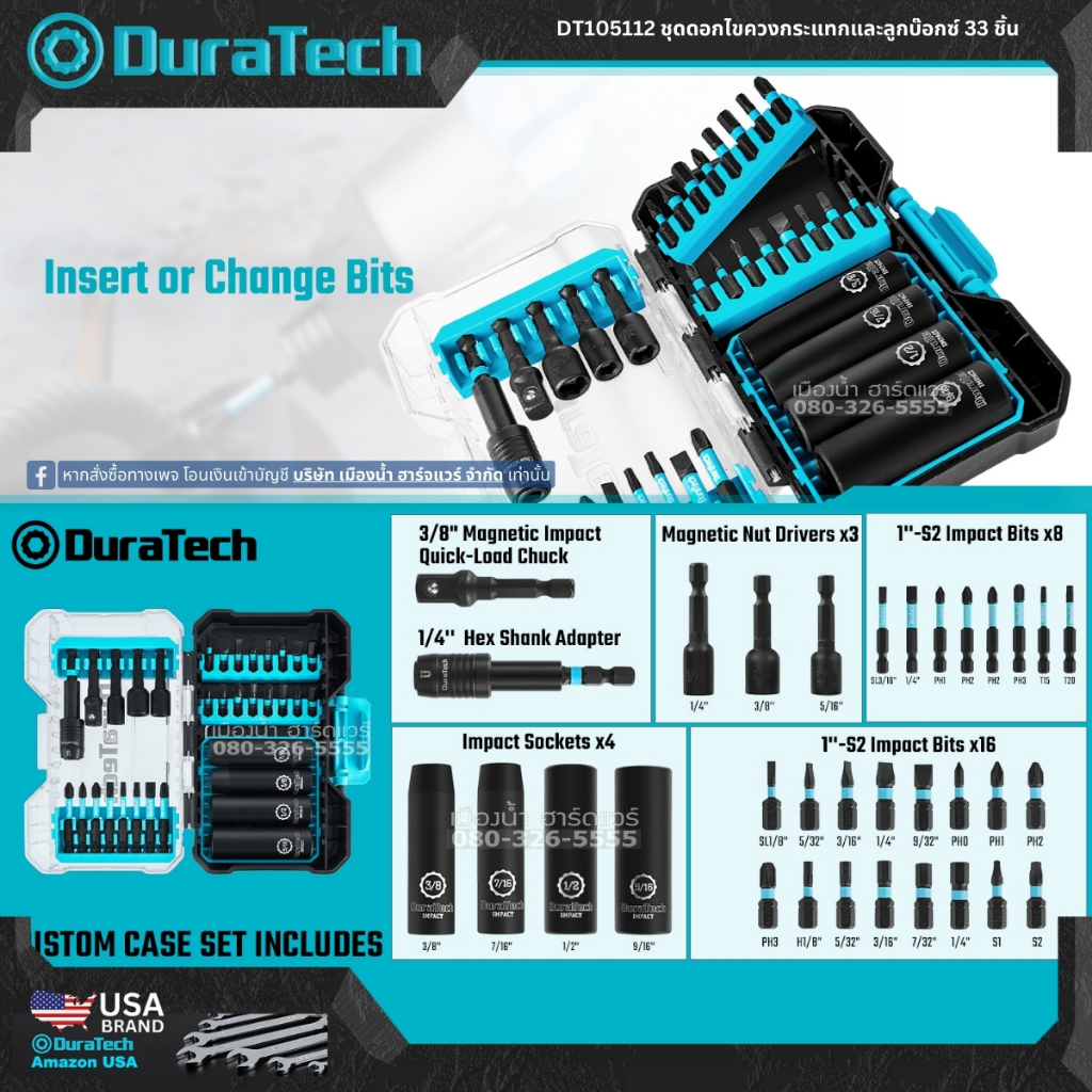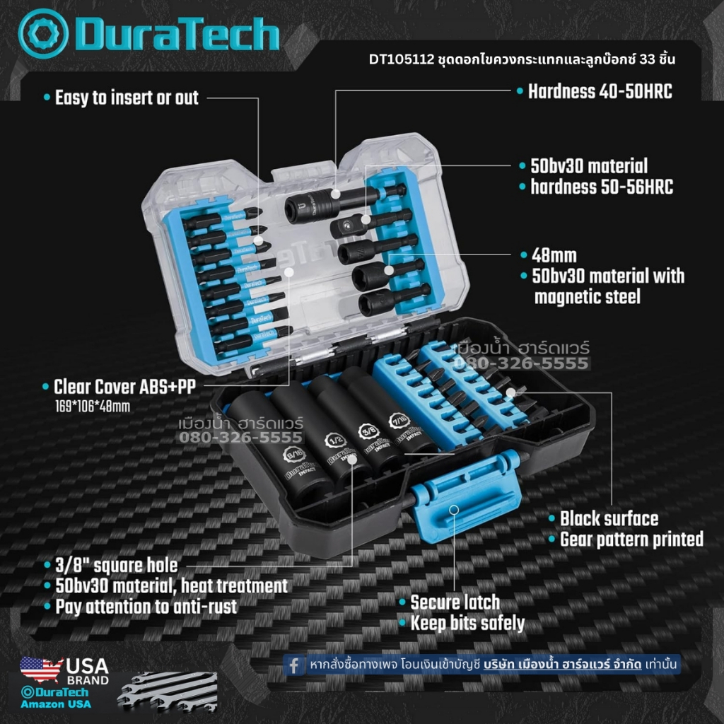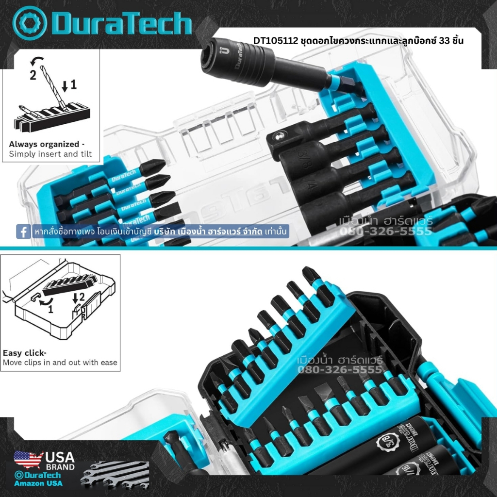 Duratech รุ่น DT105112 ชุดดอกไขควงกระแทกและลูกบ๊อกซ์ 33 ชิ้น พร้อมกล่องเก็บ CR-V