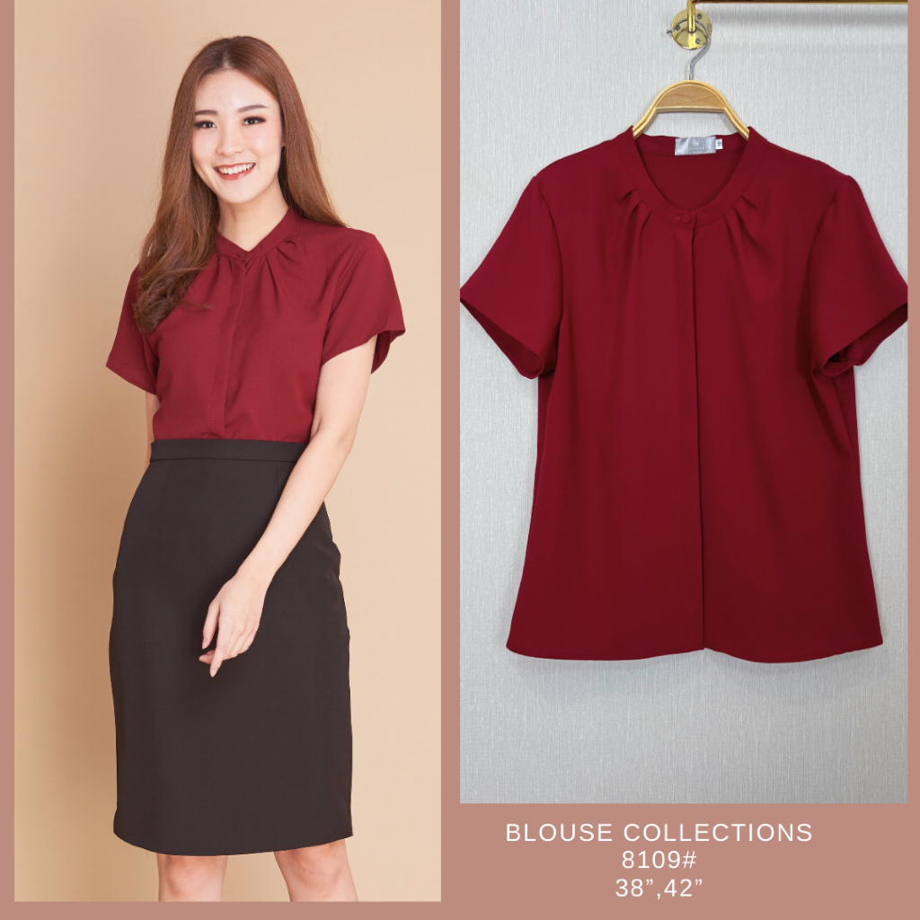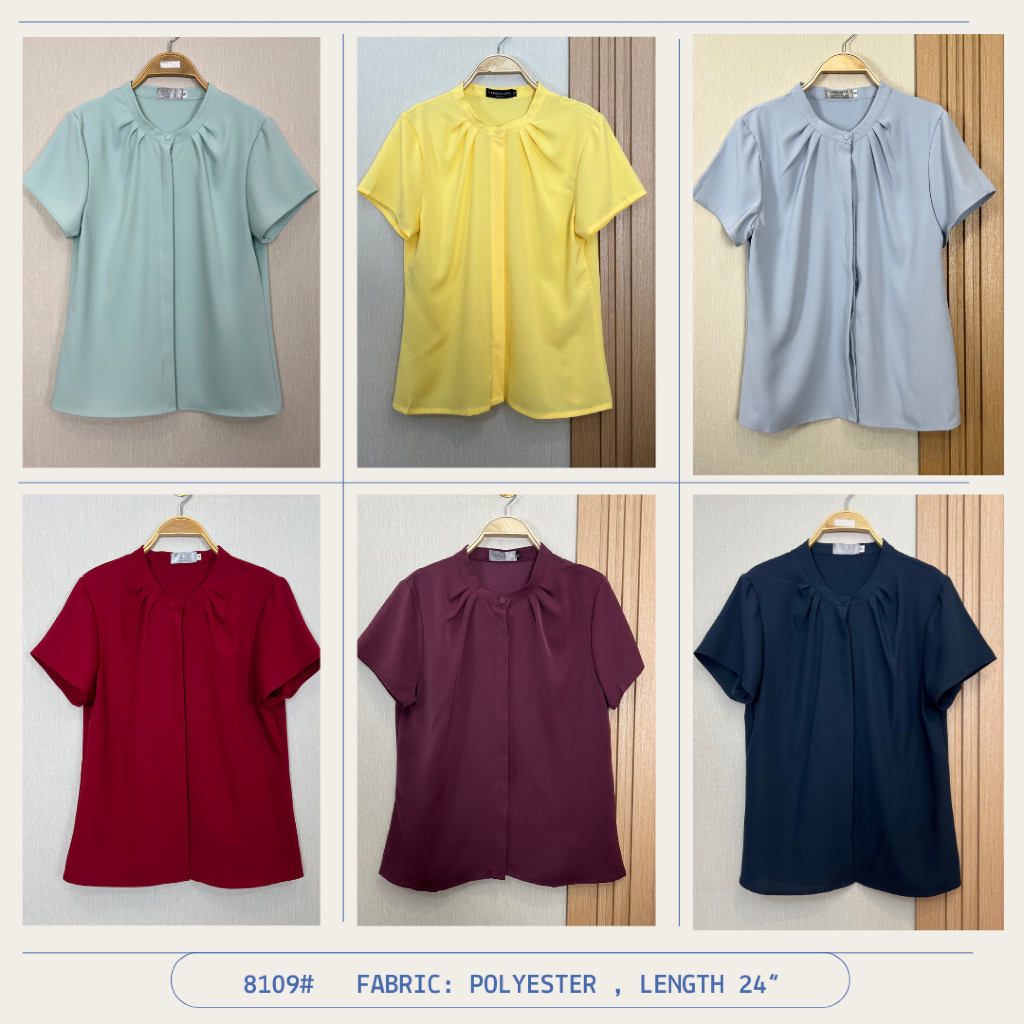 เสื้อ blouse 8109# เสื้อคอจีนจีบคอ มีกระดุมผ่าหน้าแต่งสาบซ่อน แขนสั้น