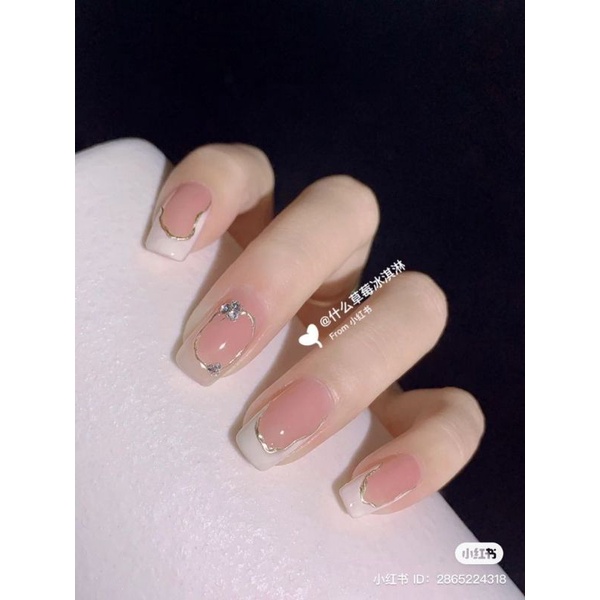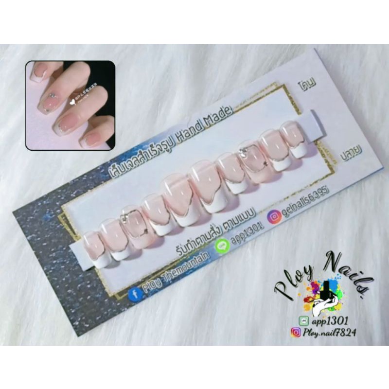 พร้อมส่ง เล็บปลอมสำเร็จรูป สีสุขภาพเฟร้นปลายขาวเรียบหรู