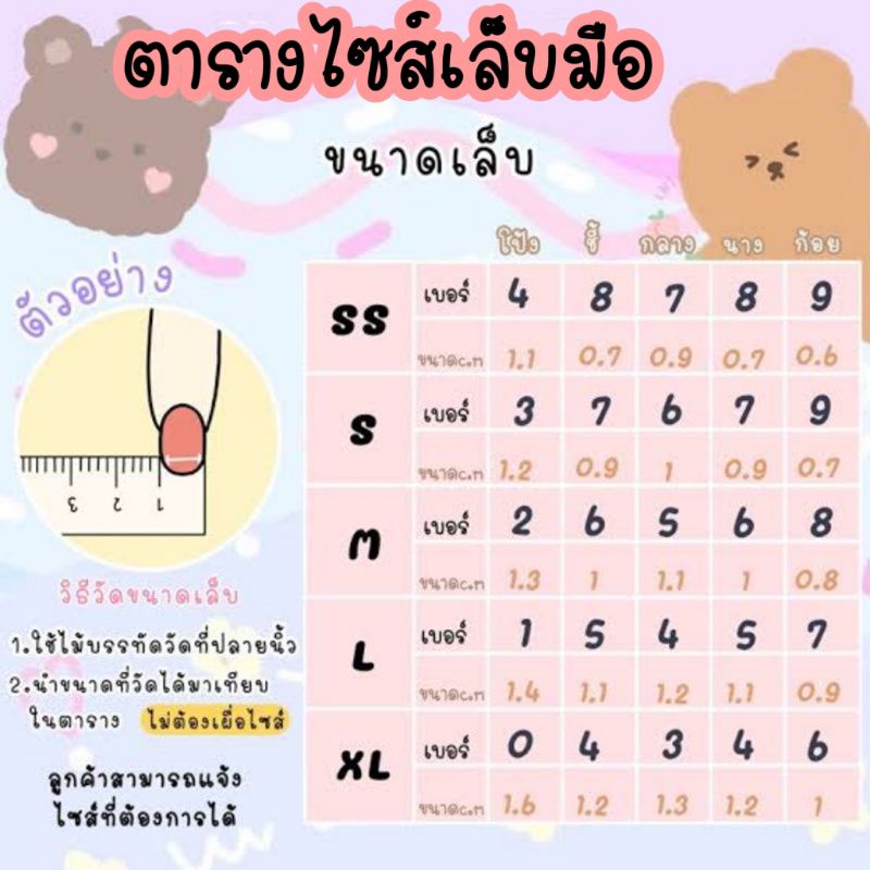?เลือกไซส์เล็บ+ทรงเล็บได้? (s m l ssมาตรฐานคือm) ทรงบัลเล่ต์แนะนำให้ลด1ไซส์