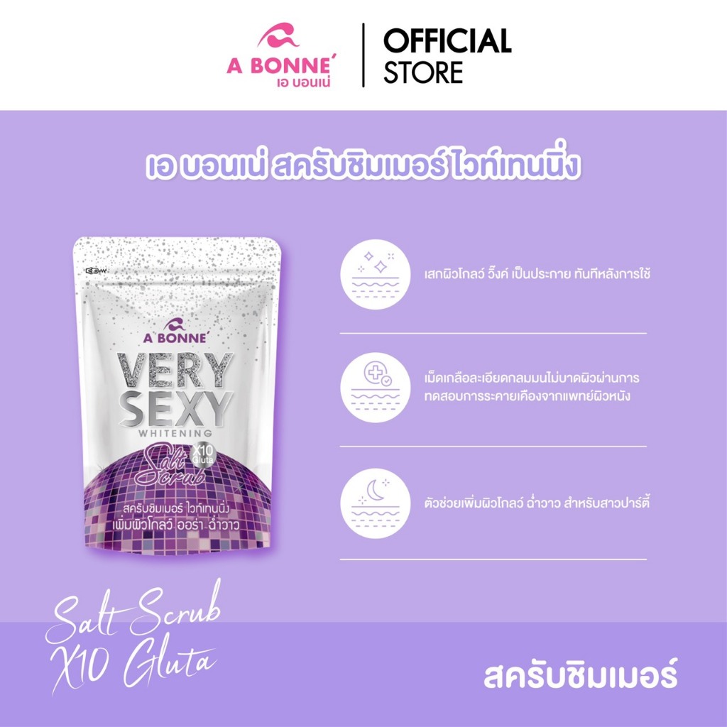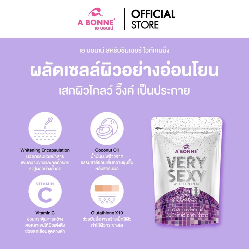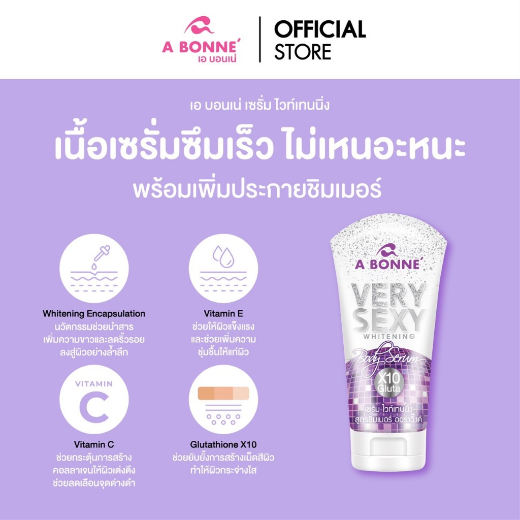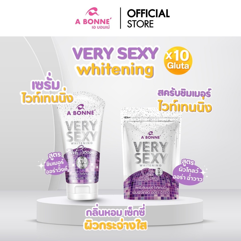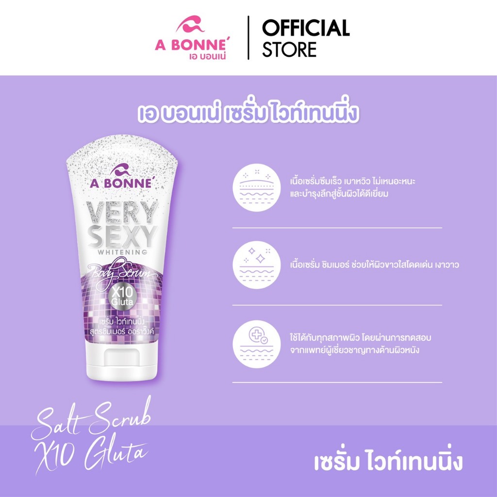เอ บอนเน่ สครับ & เซรั่ม ชิมเมอร์ ไวท์เทนนิ่ง สูตรเวรี่เซ็กซี่ เพิ่มผิวโกลว์ ออร่า ฉ่ำวาว