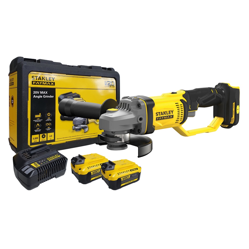 STANLEY เครื่องเจียรไร้สาย 100 มม. 20V SCG400N ตัวเปล่า / SCG400M2K-B1 ครบชุด แบตเตอรี่ 4.0Ah พร้อมกล่องพลาสติก