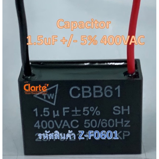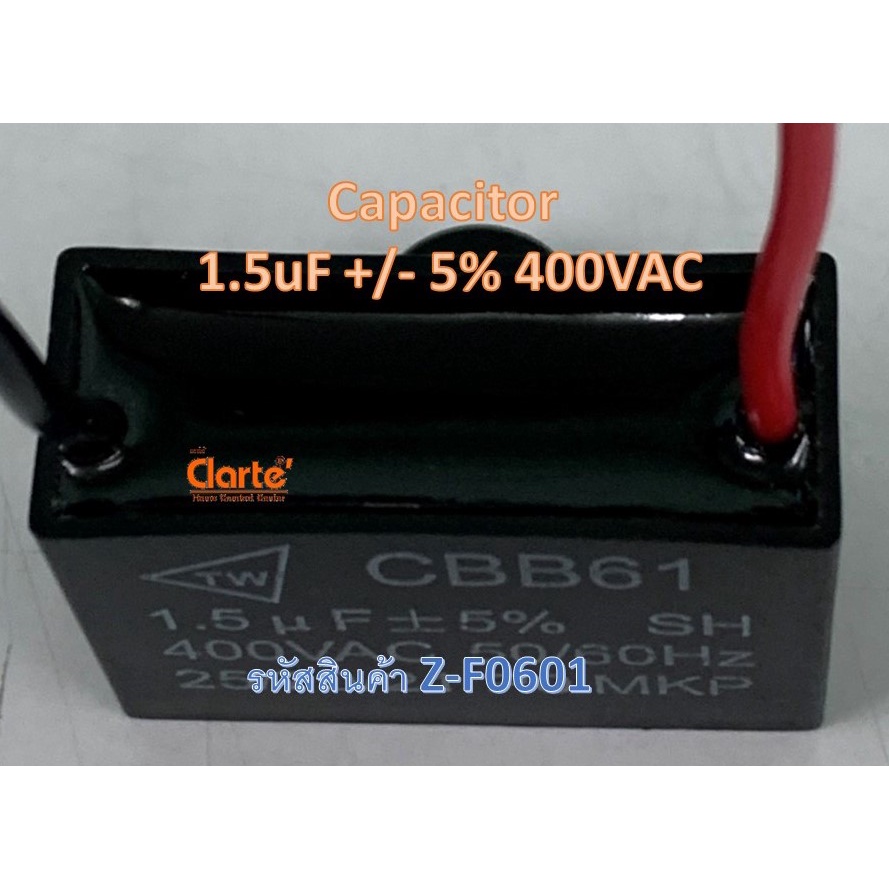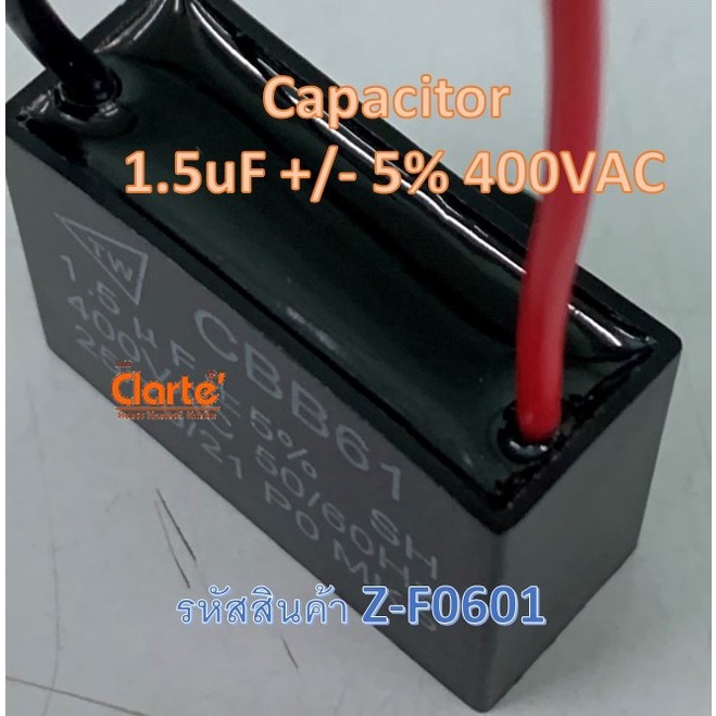 Capacitor 1.5uF +/-5% 400VAC 50 Hz สำหรับต่อคล่อมขดสตาร์ทมอเตอร์พัดลมขนาด 14-16 นิ้ว