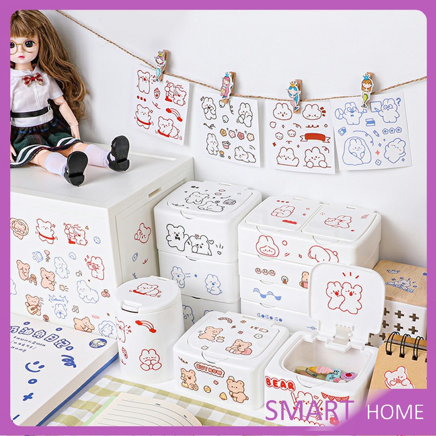 กล่องเก็บของ มินิ พลาสติก กล่องทิชชู่ ฝาปิดแบบกดเปิด กล่องเก็บของ storage box