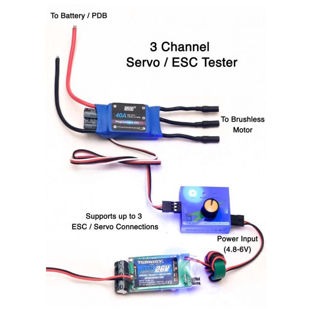 Servo Tester 3CH , ESC tester รับไฟได้ 3.7 – 6v มีไฟแสดงสถานะ หมุนปรับองศา servo ได้ ตัวปรับความเร็วมอเตอร์