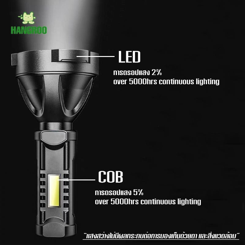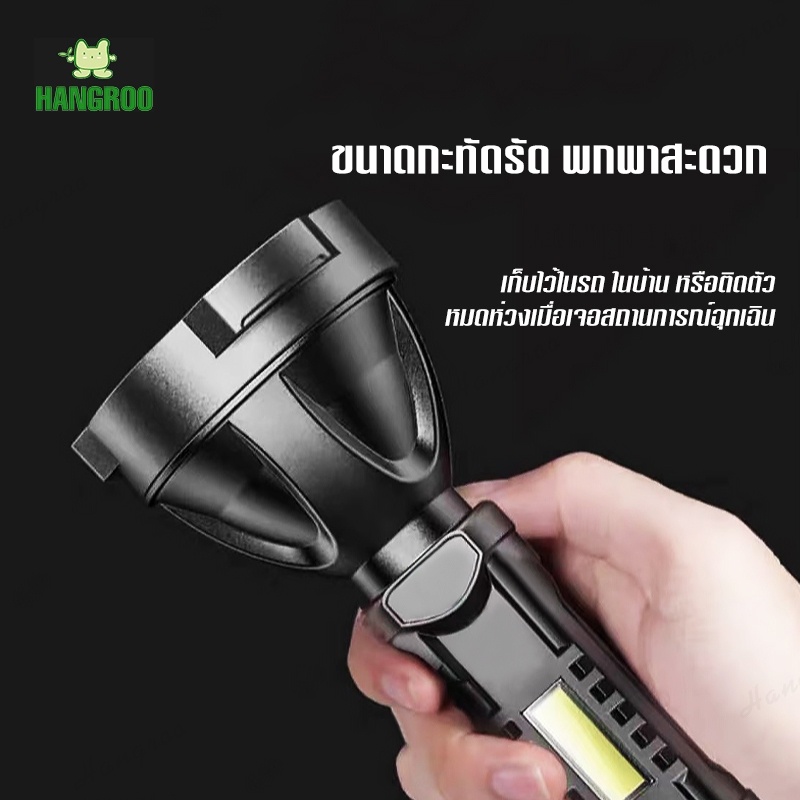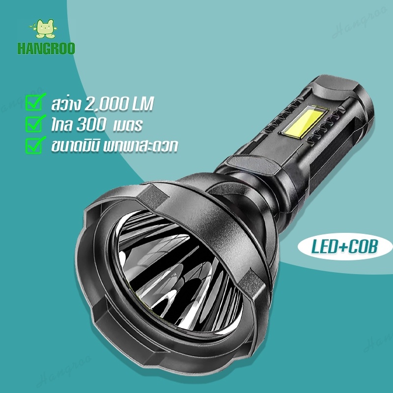HANGROO NK-101 ไฟฉายพกพา LED+COB แสงขาว ความสว่าง 2,000 Lumen ชาร์จ USB ได้ ไฟฉายแรงสูง