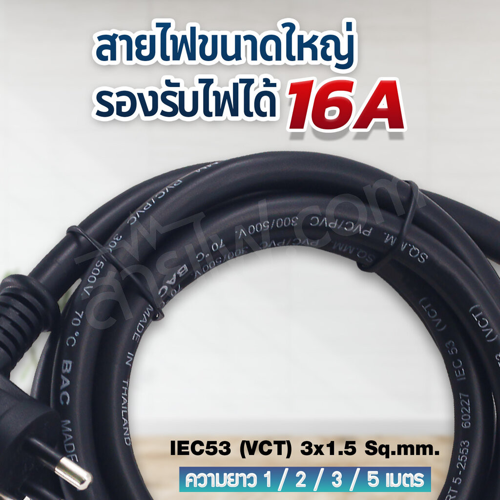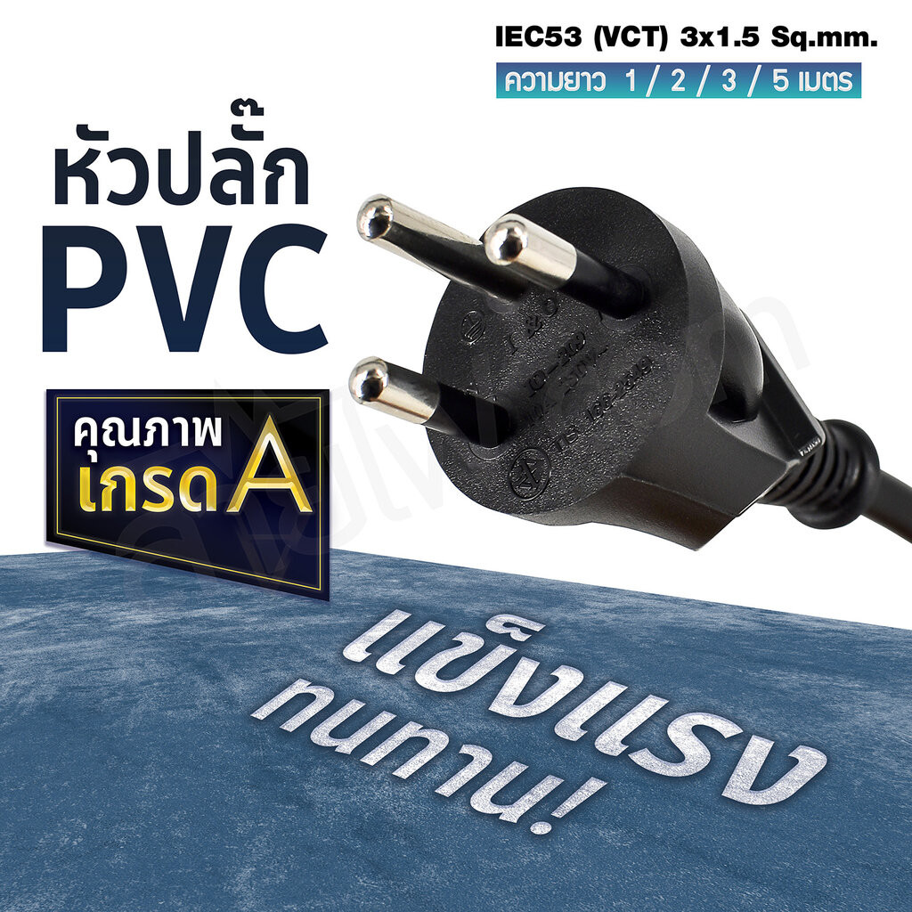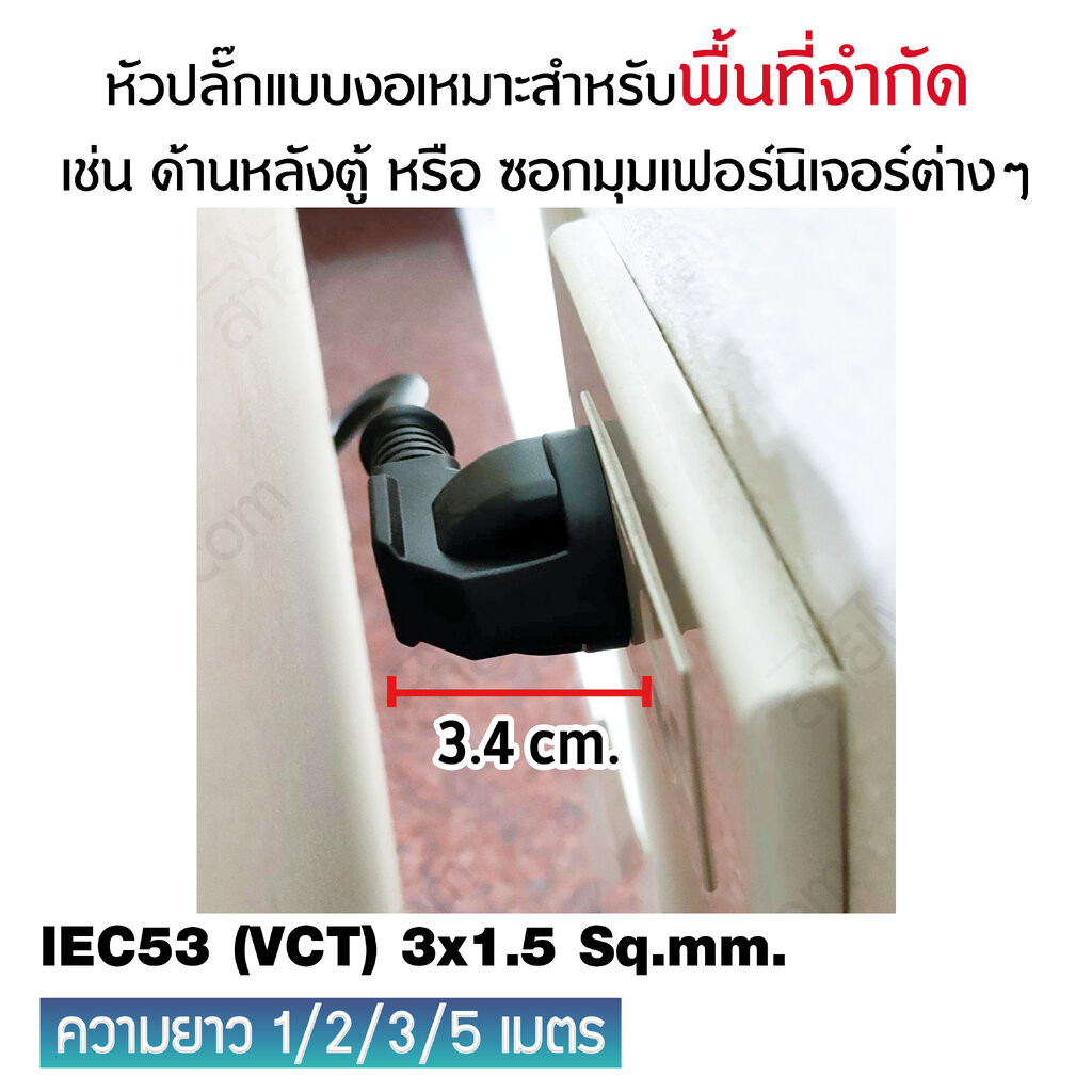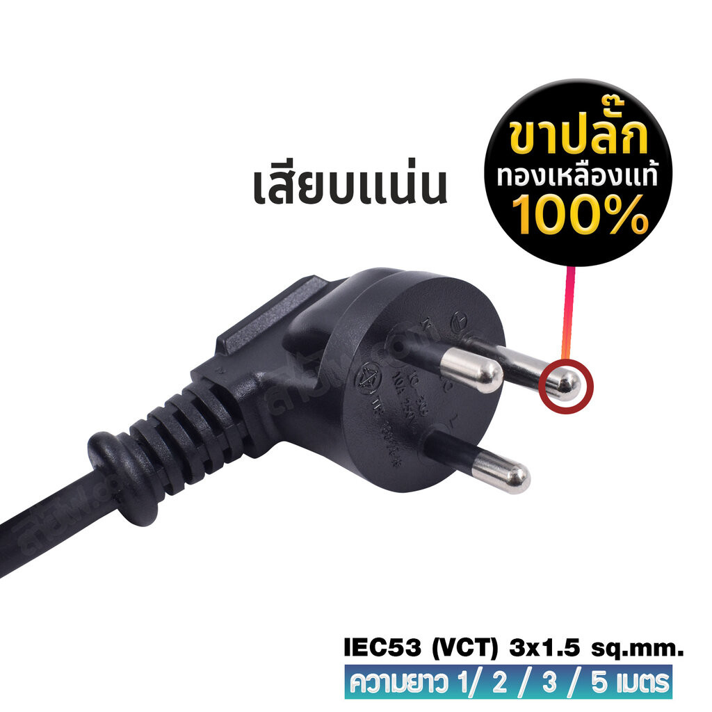 สายไฟ AC สายปลั๊กเสียบคอมพิวเตอร์ มอก. งอ มีกราวด์ IEC53 3×1.5 Sq.mm. – C13