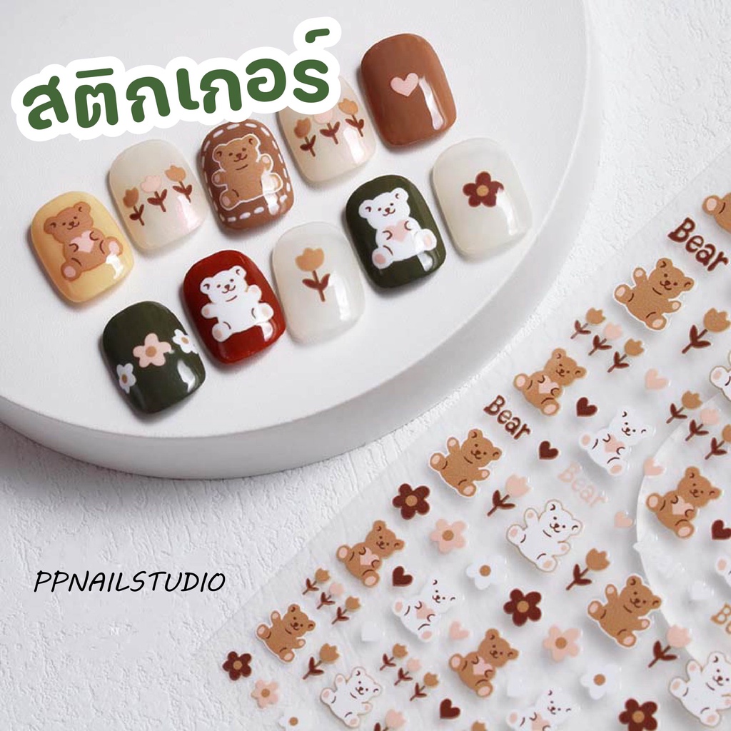 สติกเกอร์หมี อุปกรณ์ตกแต่งเล็บเจล เล็บเจล