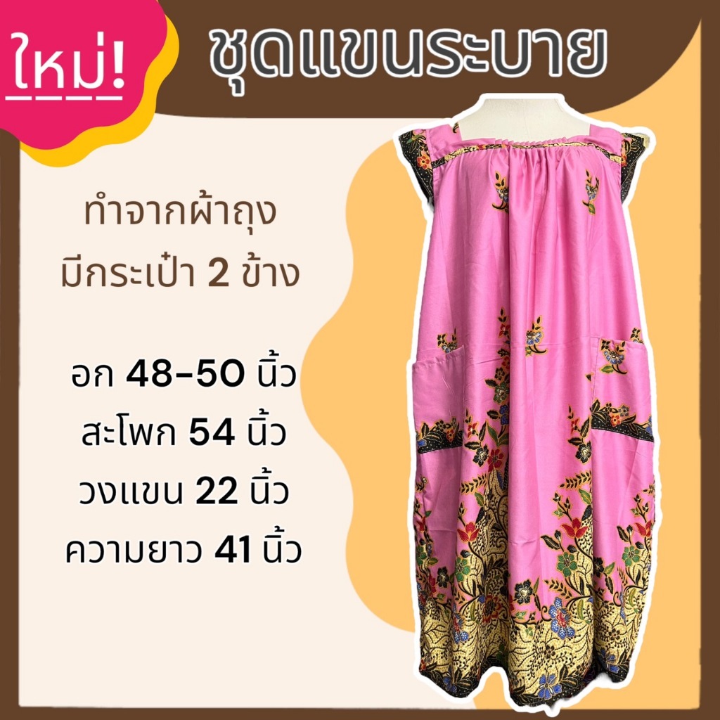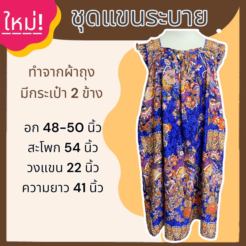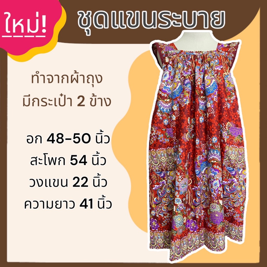 ชุดนอน กระโปรง แขนระบาย คุณแม่ ทำจากผ้าถุง ผ้านิ่มใส่สบาย ไม่ร้อน B03