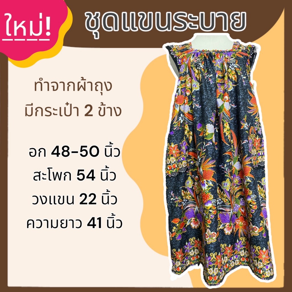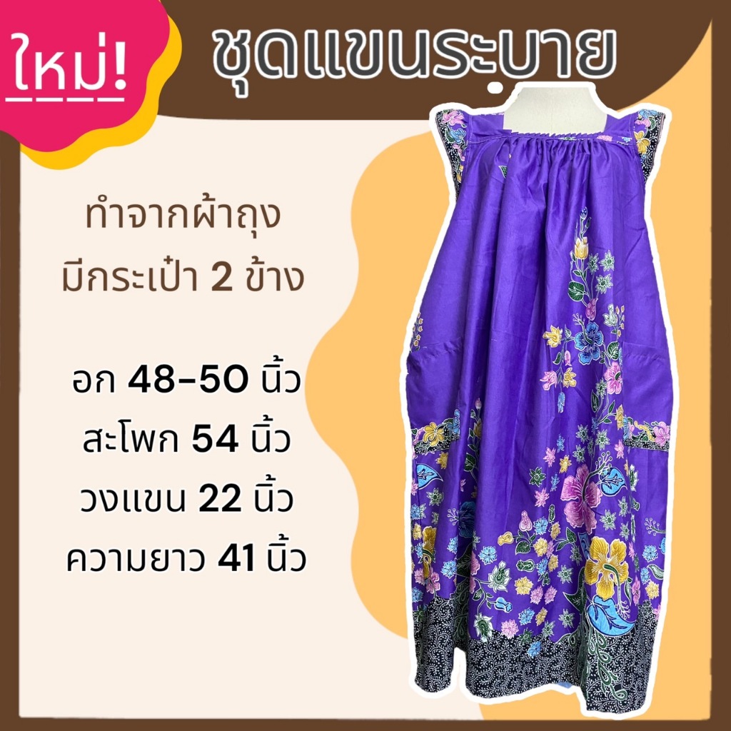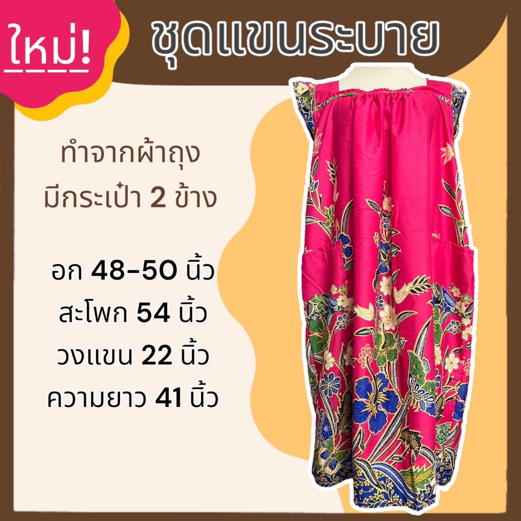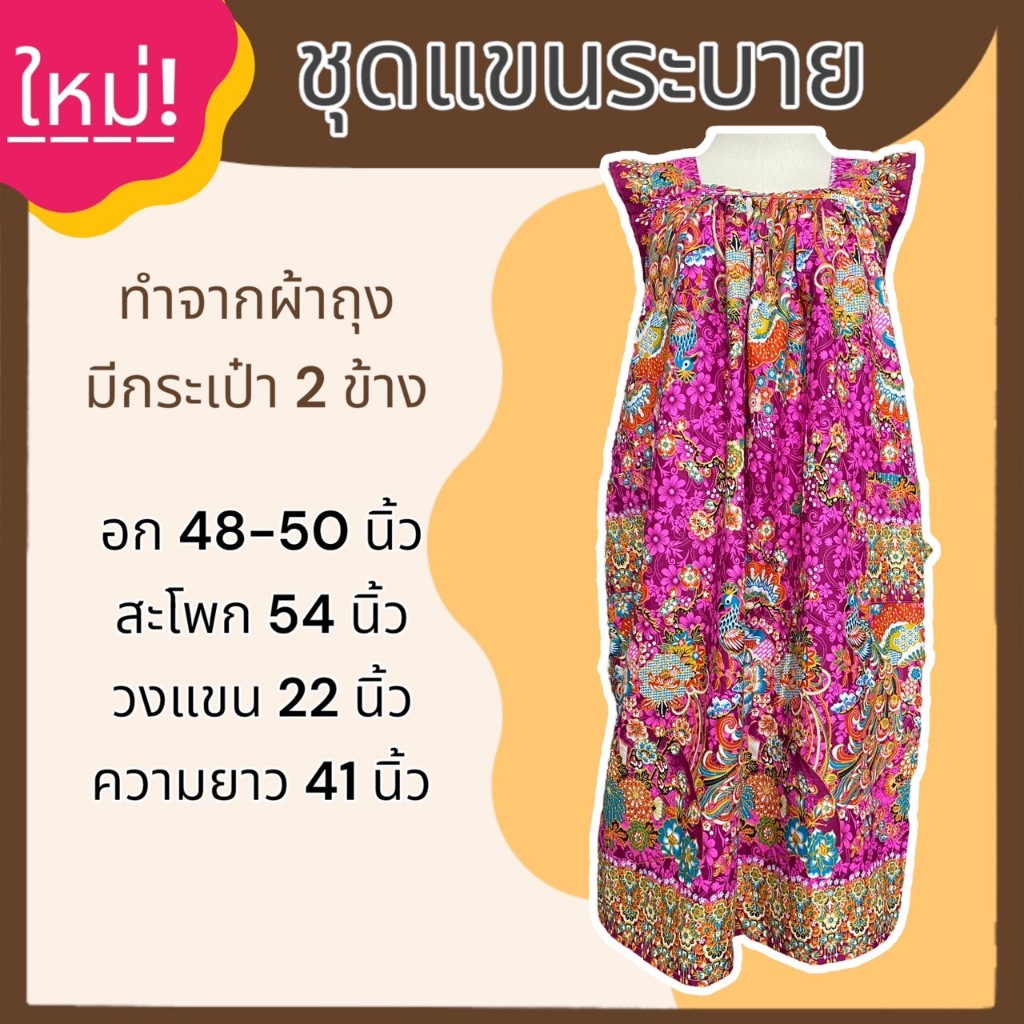 ชุดนอน กระโปรง แขนระบาย คุณแม่ ทำจากผ้าถุง ผ้านิ่มใส่สบาย ไม่ร้อน B03