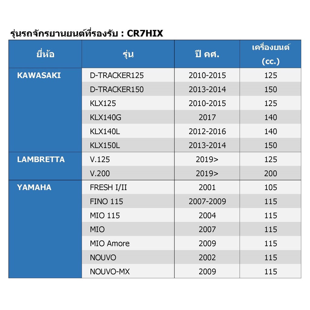 หัวเทียน NGK CR7HIX IRIDIUM IX จำนวน 1 หัว สำหรับ KAWASAKI D-TRACKER/ KLX/ LAMBRETTA/ YAMAHA FRESH/ FINO/ MIO/ NOUVO