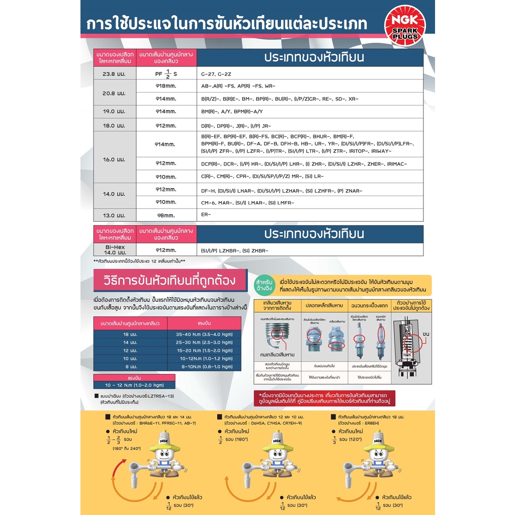 • สำหรับรถที่ต้องการอัพเกรดจากหัวเทียนมาตรฐาน/หัวเทียนติดรถเบอร์ C7HSA และเบอร์ CR7HSA เพื่อเพิ่มสรรถนะให้ดีขึ้น