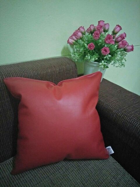 หมอนอิงหุ้มหนังพีวีซี(40cm*40cm),(50*50)ป้องกันไรฝุ่น+หมอนอิงผ้าลายริ้วและลายไทย