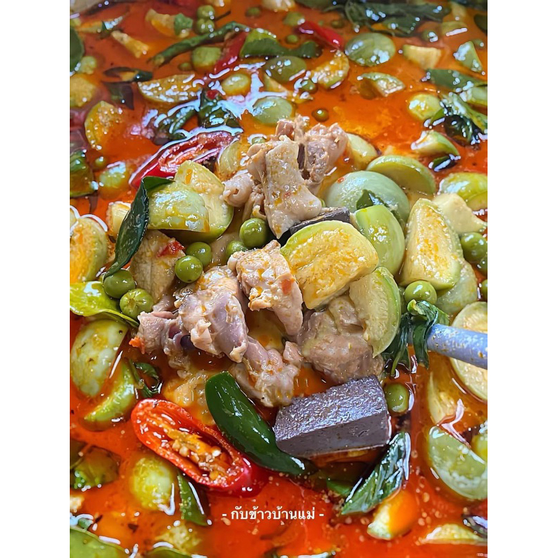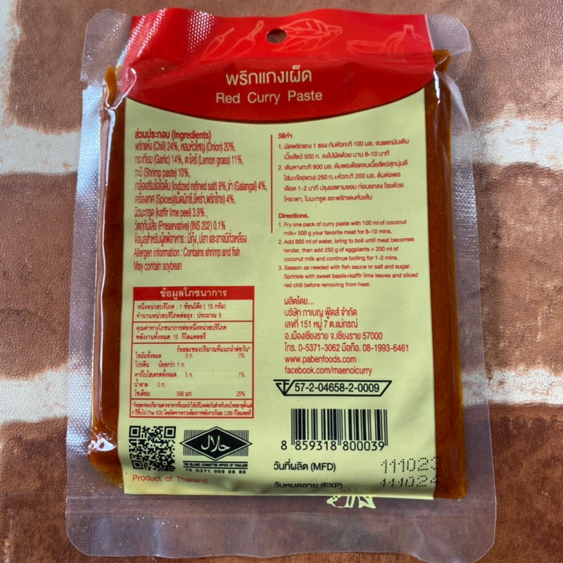 ส่วนประกอบ : พริกแห้ง หัวหอม กระเทียม ตะไคร้ ข่า ผิวมะกรูด เครื่องเทศ กะปิดี และ เกลือ