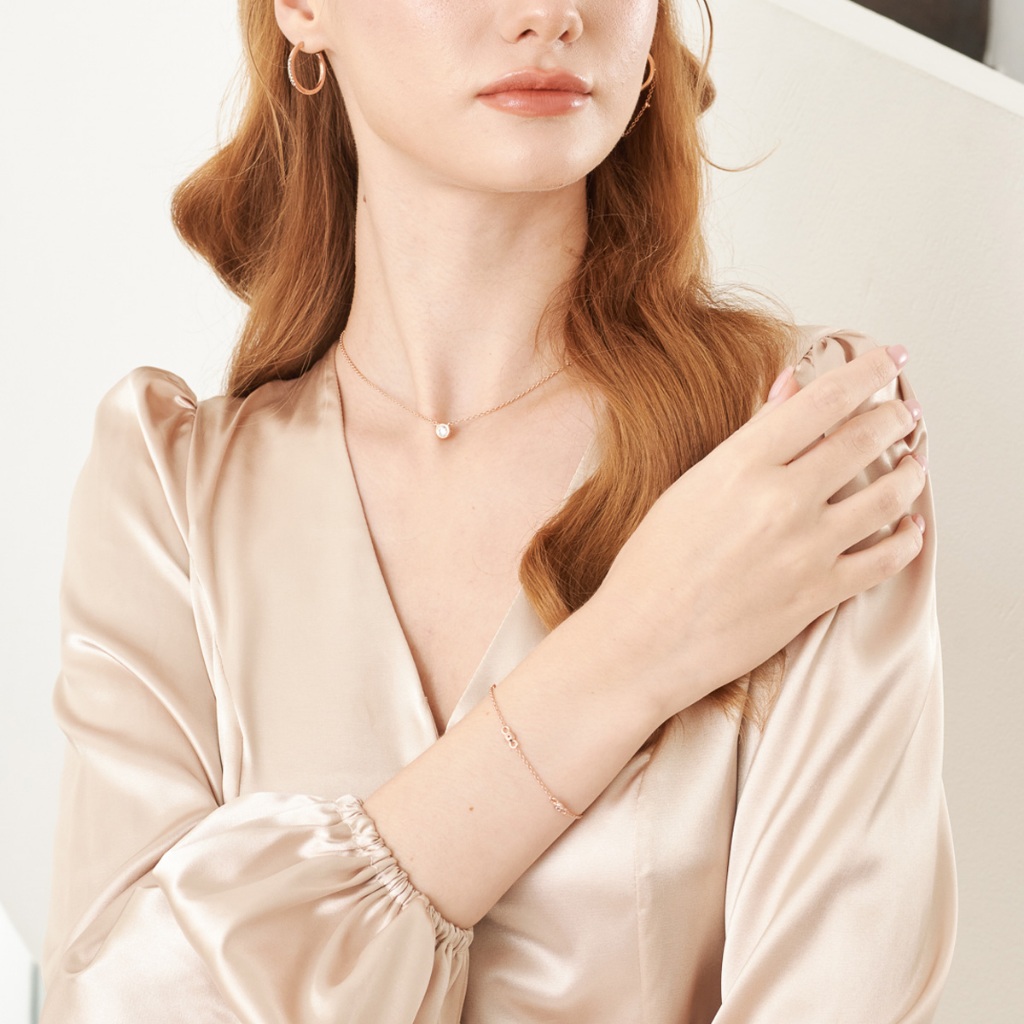 สานต่อความรักความผูกพันกับคนรักให้แน่นแฟ้นมากยิ่งขึ้นด้วยการมอบสร้อยข้อมือดีเทลแสนน่ารัก ตัวเรือนประดับพลอย Premium Zirconia เม็ดเล็กคุณภาพที่มาพร้อมการฝังหุ้มอย่างแข็งแรงและประณีต ขอบพลอยได้รับการปกป้องจากรอบด้าน ทำให้คุณสวมใส่สบายคล