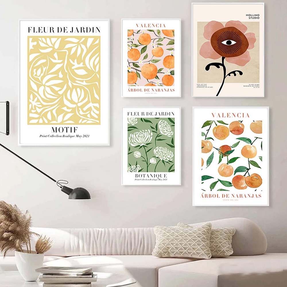 โปสเตอร์ภาพวาดศิลปะ รูปเลม่อน ดอกไม้ ดวงตา สีส้ม สไตล์เรโทร สําหรับตกแต่งผนังบ้าน ห้องนั่งเล่น ห้องนอน คาเฟ่