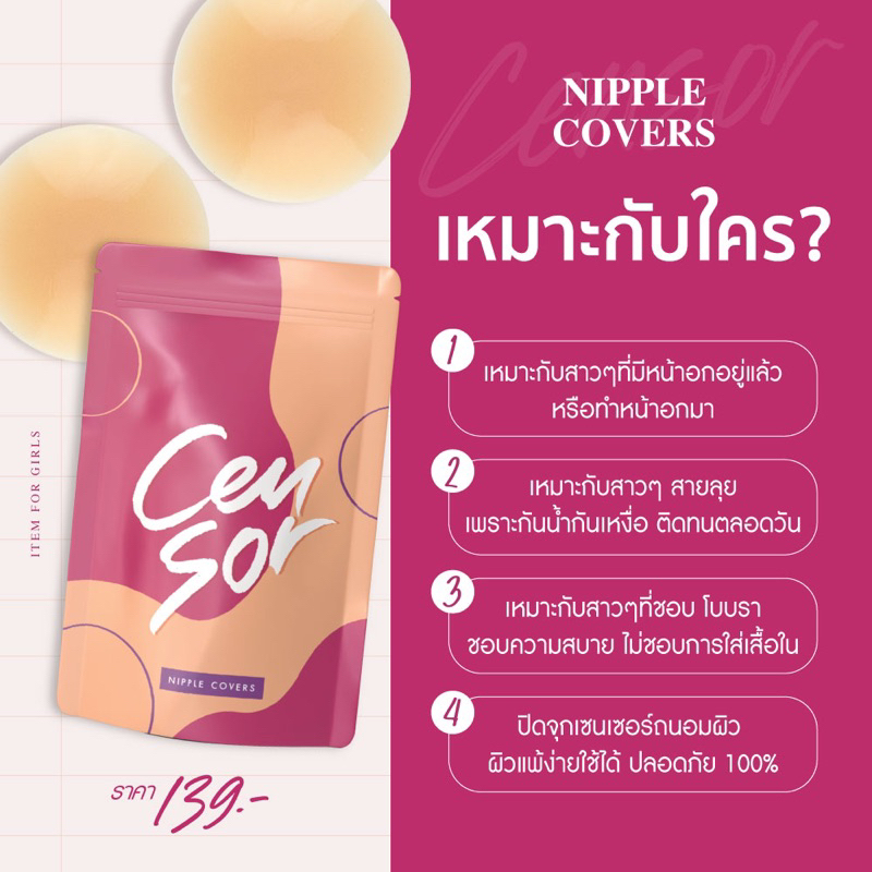 [พร้อมส่ง] ปิดจุกCensor เซนเซอร์ มีกาว กันน้ำ กันเหงื่อ กาวการแพทย์ เป็นมิตรต่อผิว