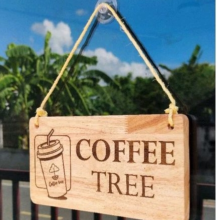 ป้ายไม้สลักเลเซอร์ สลักข้อความโลโก้