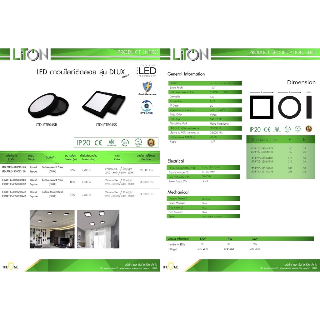 !!ขายส่งยกลัง!! โคมดาวไลท์ สีขาว LED ติดลอยหน้าเหลี่ยม 12W 18W และ 24W LITON โคมเพดาน โคมติดลอย โคมไฟเพดาน