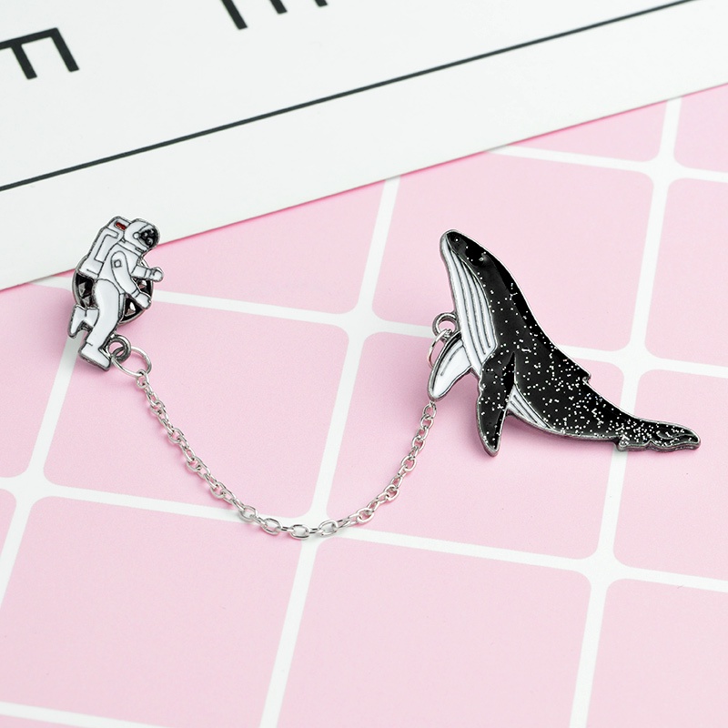 เข็มกลัด รูปการ์ตูนนักบินอวกาศ ปลาวาฬ ของขวัญสําหรับเพื่อน