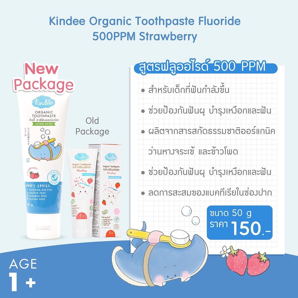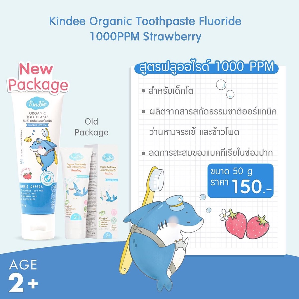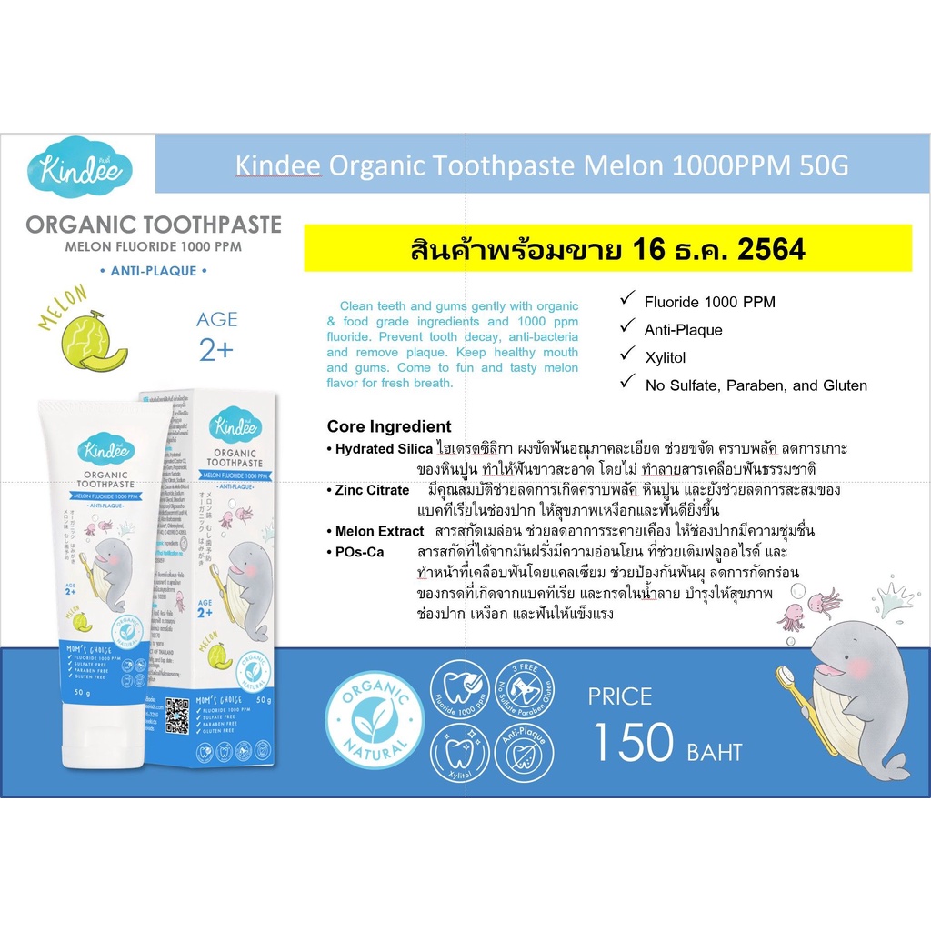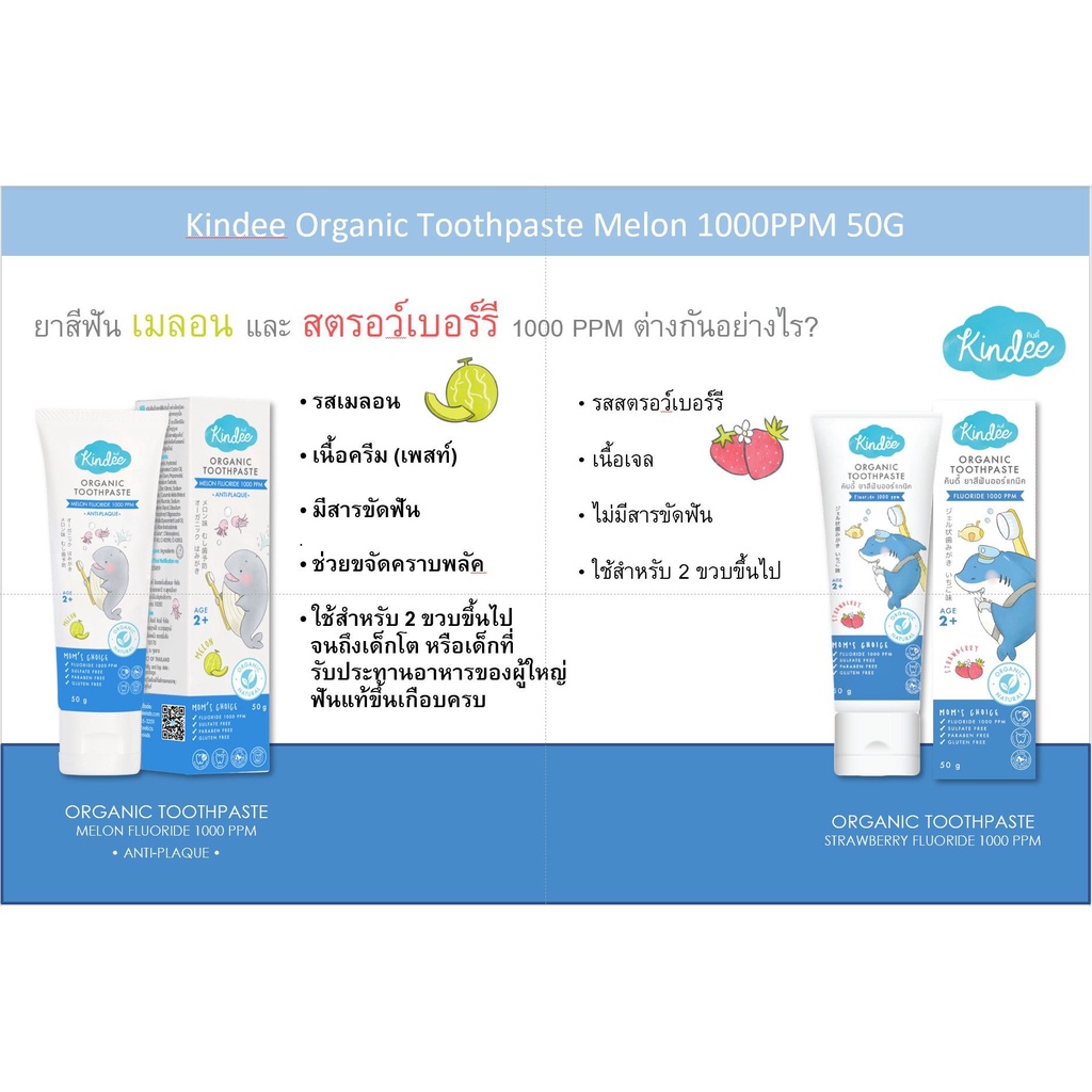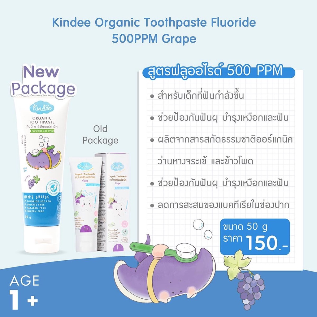 ยาสีฟันออแกนนิค ยาสีฟันกลืนได้ Kindee 0.6-1ปี, 1-2ปี 2-12ปี และ6ปีขค่นไป ไม่เป็นอันตราย ไม่มีน้ำตาล ขนาด 50กรัม