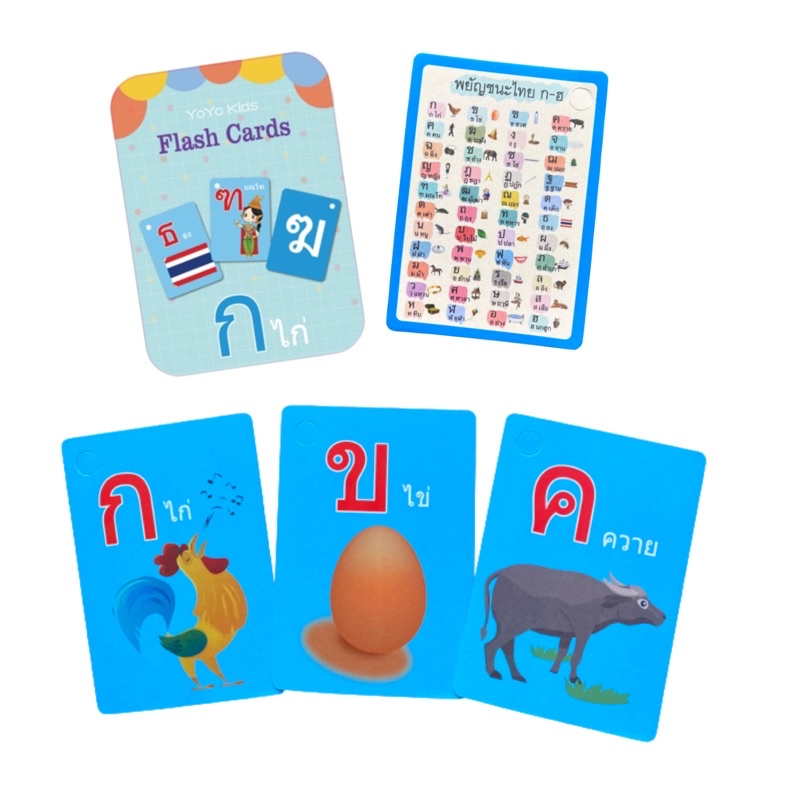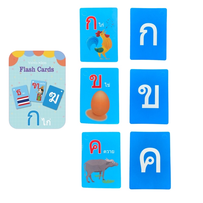 พร้อมส่ง แฟลชการ์ด ก-ฮ flashcard บัตรคำศัพท์ ก-ฮ 45ใบ การ์ดคำศัพท์พยัญชนะไทย