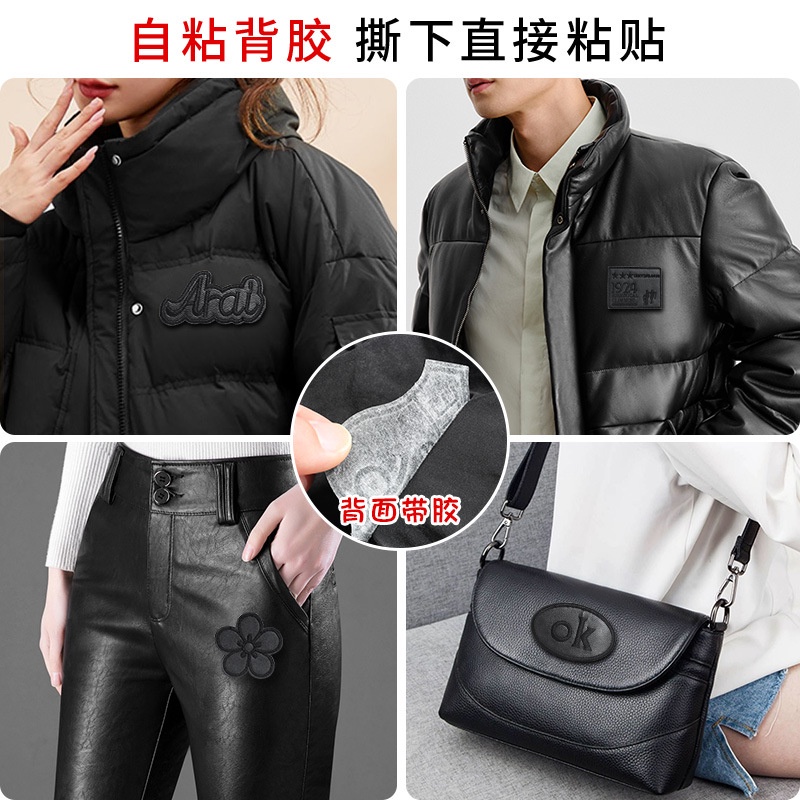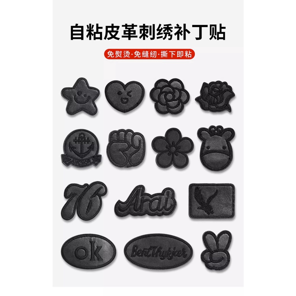 แผ่นสติกเกอร์หนัง มีกาวในตัว ระดับไฮเอนด์ สีดํา สําหรับติดตกแต่งเสื้อผ้า กระเป๋า แจ็กเก็ต หนัง Diy
