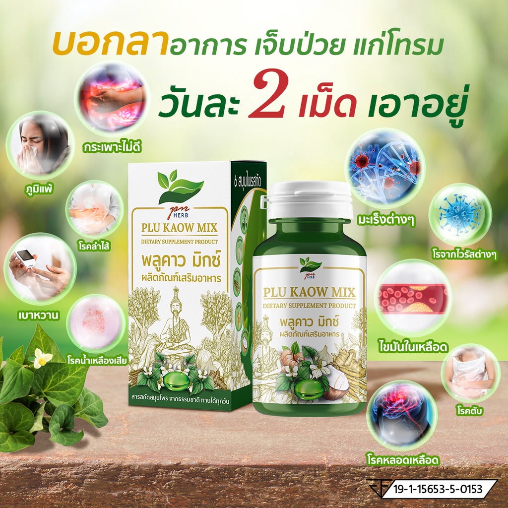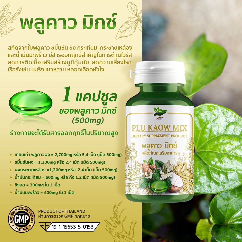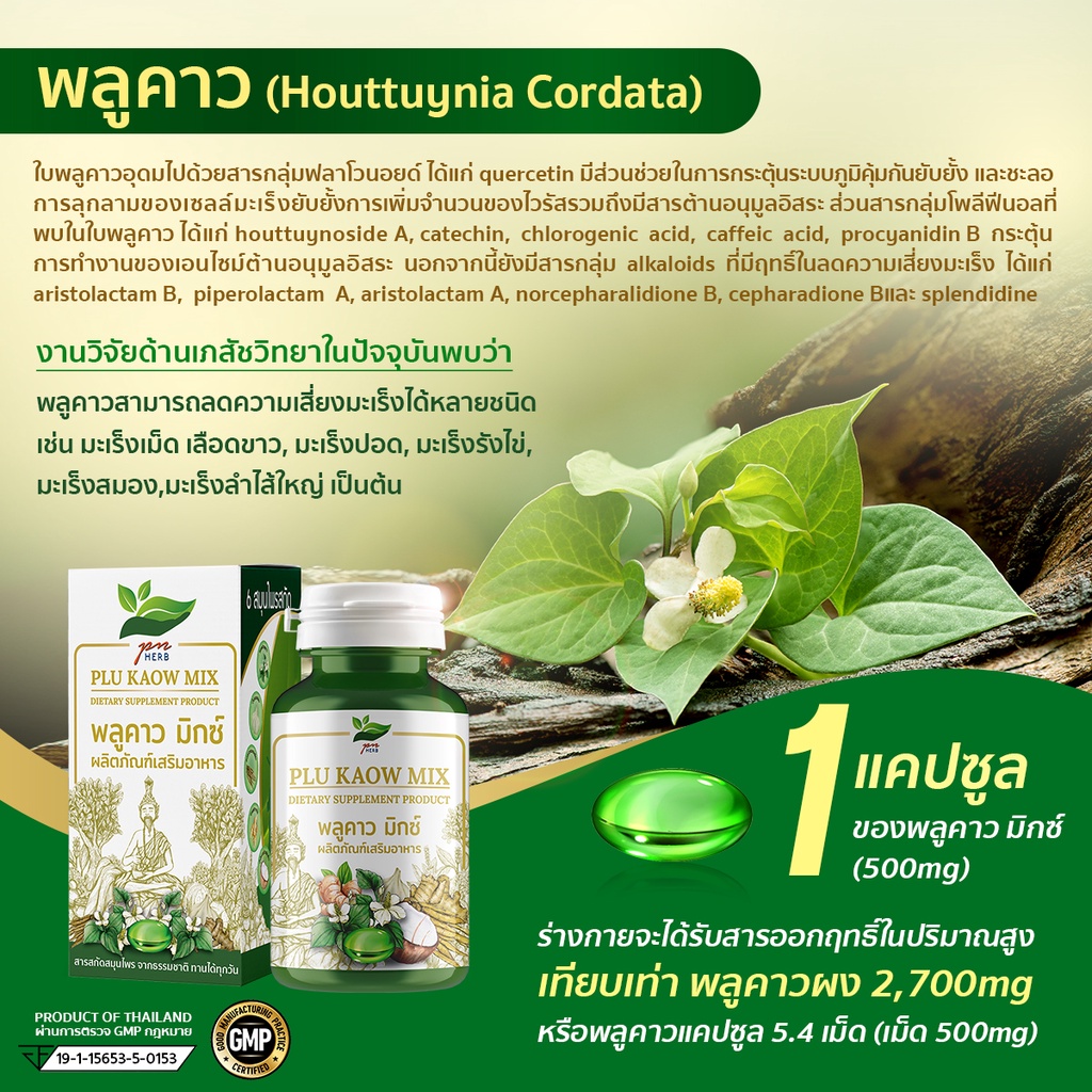 พลูคาวมิกซ์ (Plu kaow mix) 60 เม็ด พลูคาวสกัดเข้มข้น และสมุนไพรอีก 5 ชนิด โดย ดร.เพ็ญศรี เพ็ญประไพร