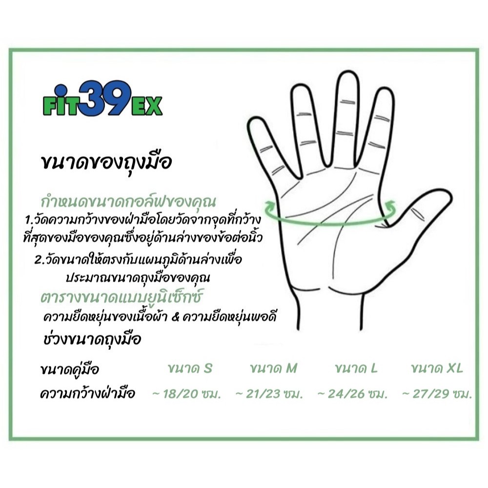 ถุงมือนักกอล์ฟ Fit 39 ex Classic ตัวท๊อป ยืดหยุ่นทนทานที่สุด ถุงมือกอล์ฟชาย ถุงมือกอล์ฟผญ ซุปเปอร์กริป ทนต่อการลื่น ทนต่อการสึกหรอ ถุงมือกอฟล์ FIT 39 (M, L, XL) อุปกรณ์กอล์ฟ Golf Gloves Golf Accessories