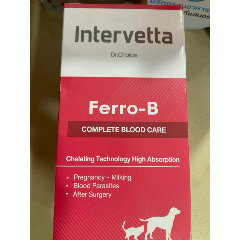 แบ่งขาย Dr Choice Ferro B Intervettaบำรุงเลือดสุนัขและแมวแม่พันธุ์ตั้งท้องให้นมลูกหลังผ่าตัดโลหิตจาง