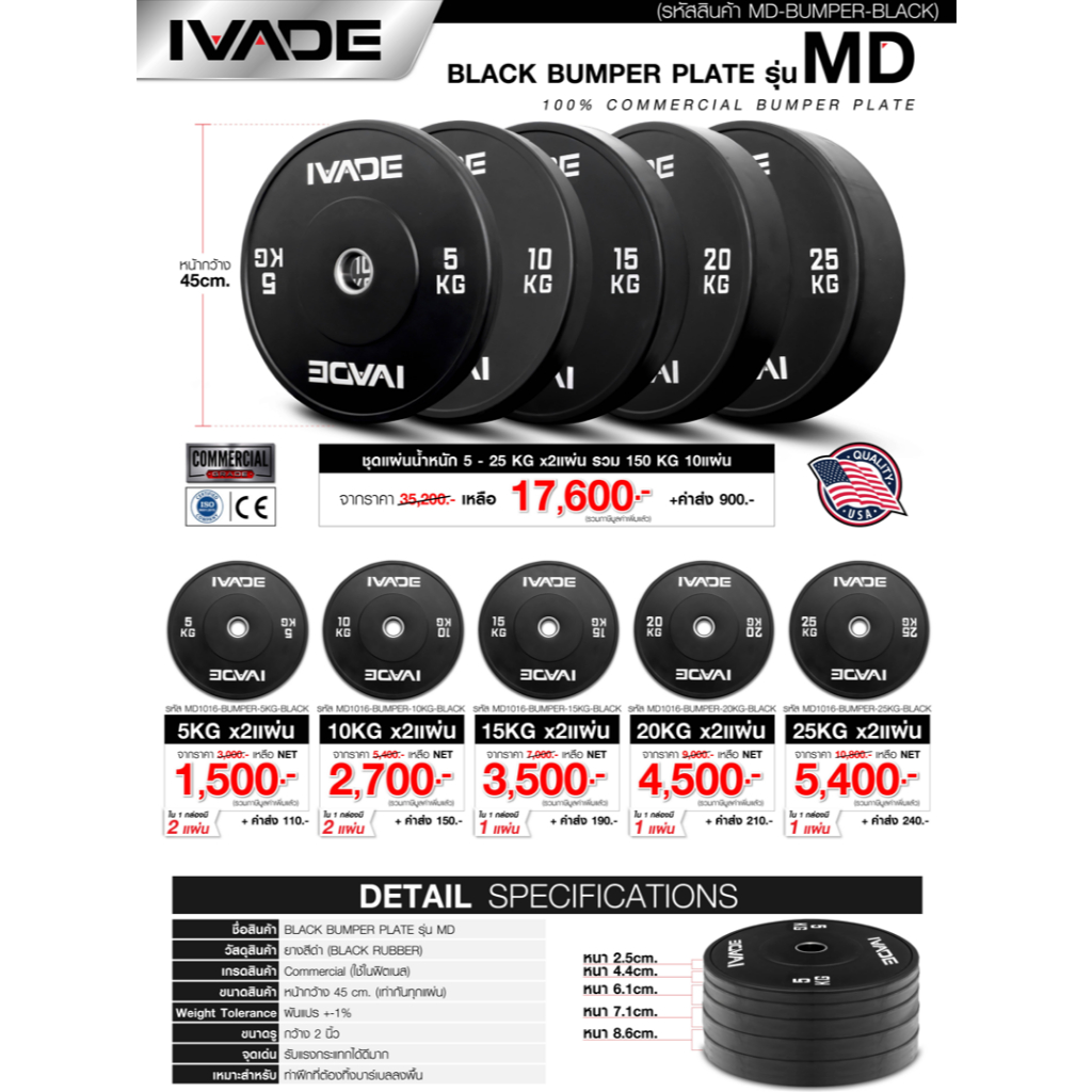 แผ่นน้ำหนัก 15 กิโล x 2 แผ่น BLACK BUMPER (รูขนาด 2 นิ้ว) รุ่น MD