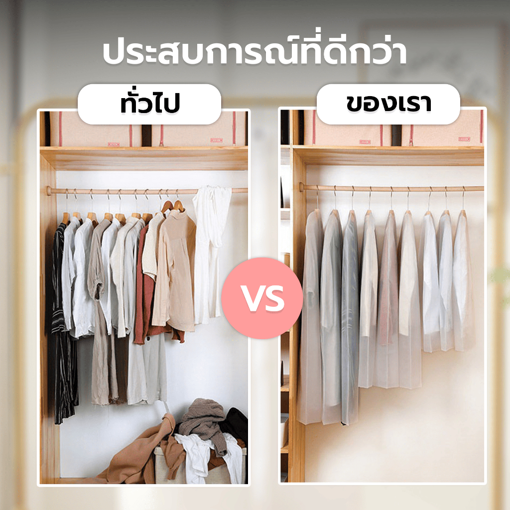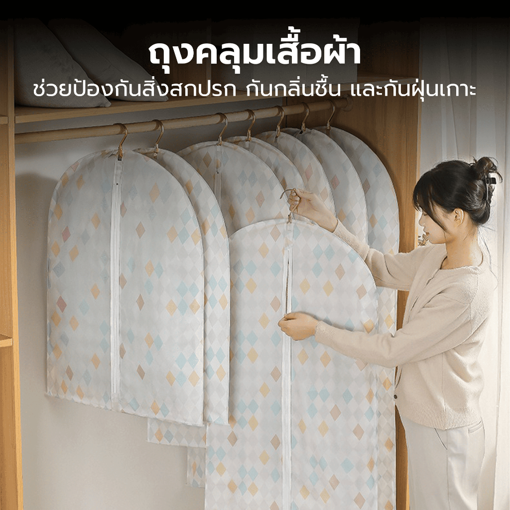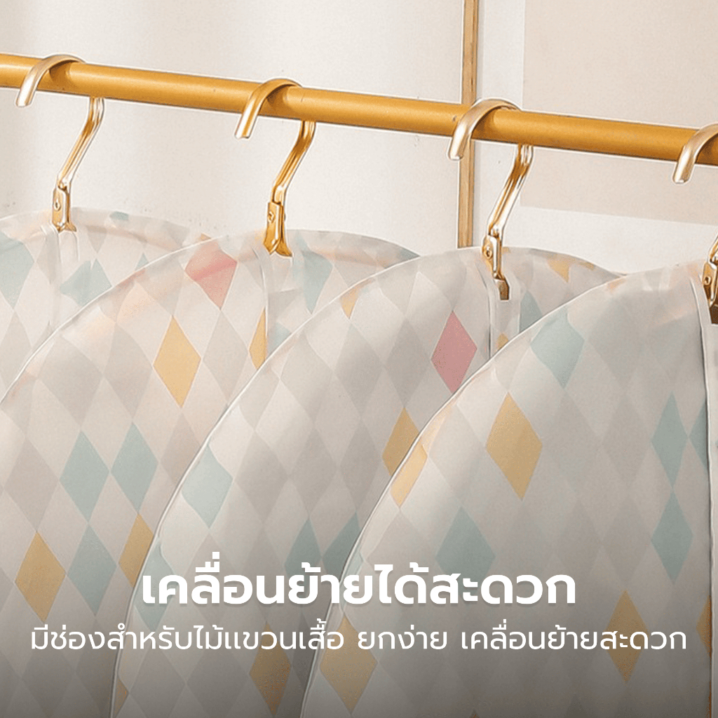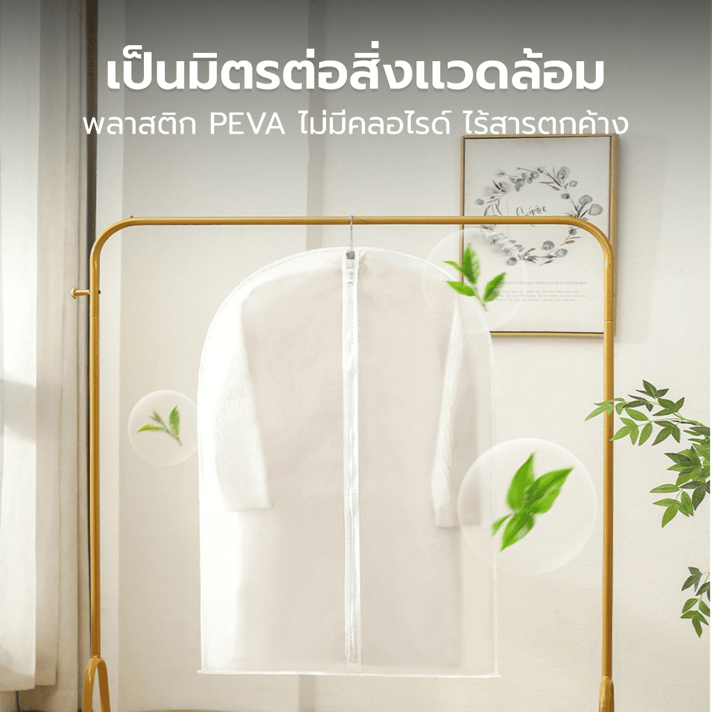 - ถุงคลุมเสื้อผ้าแบบแขวนได้ เหมาะสำหรับใส่ เสื้อเชิ้ต, สูท, เดรส, เสื้อกันหนาว, โค้ท