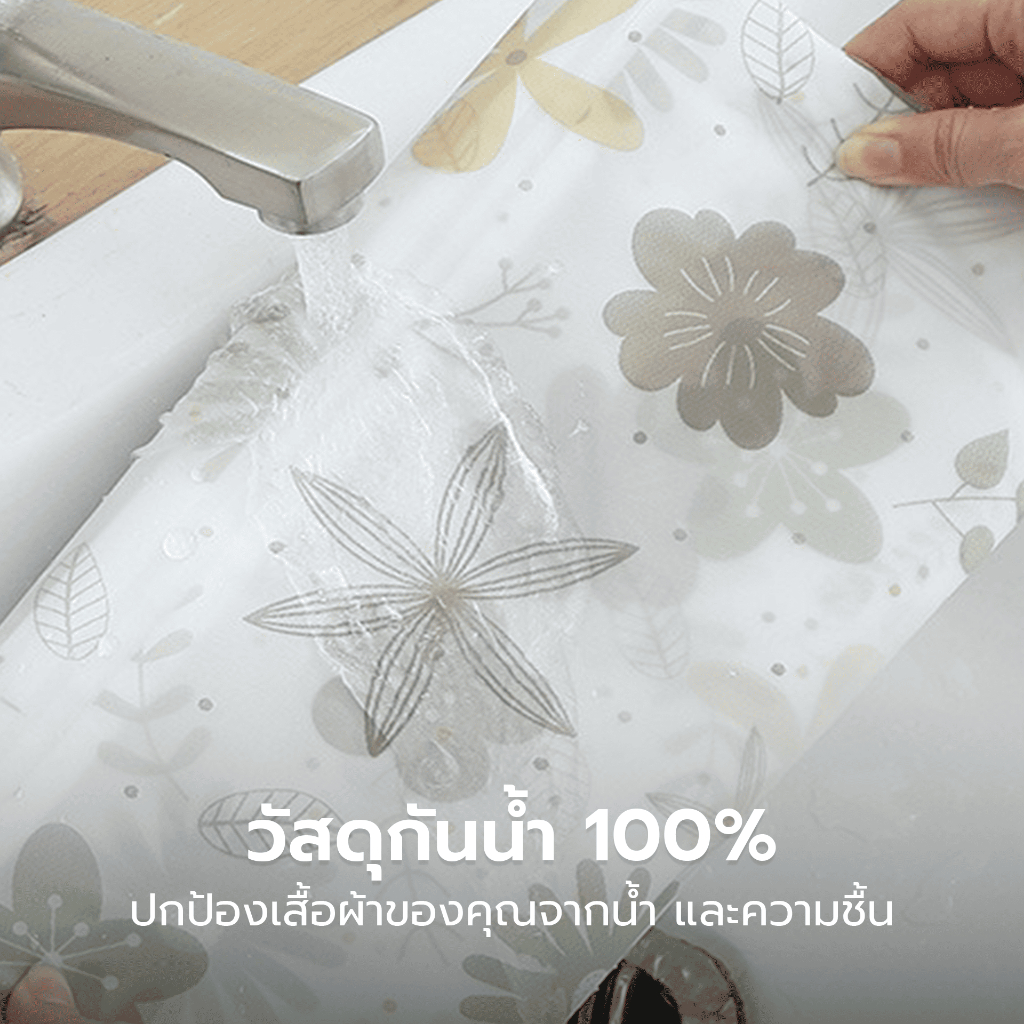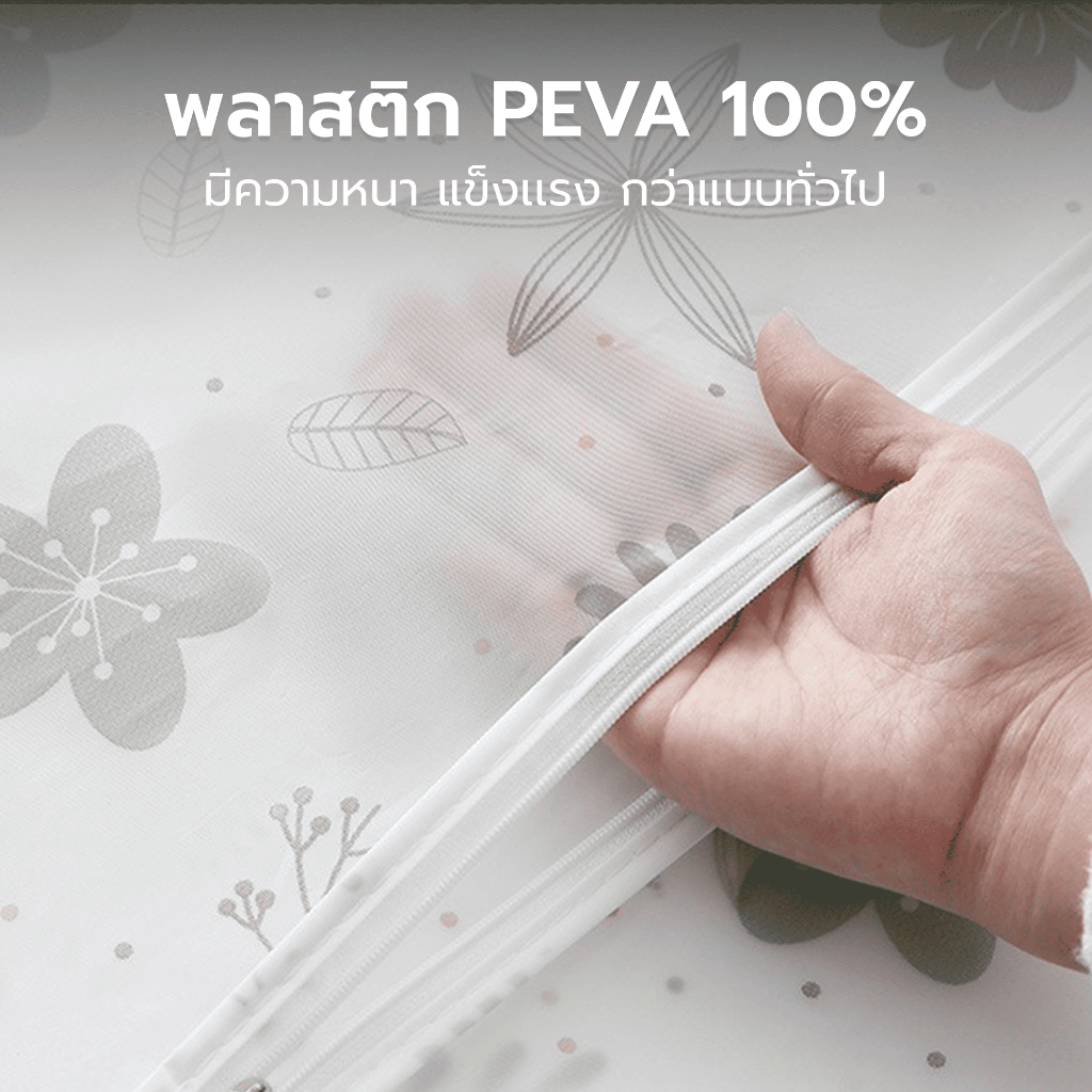- ผลิตจากวัสดุ PEVA กันน้ำได้ แข็งแรง ทนทาน