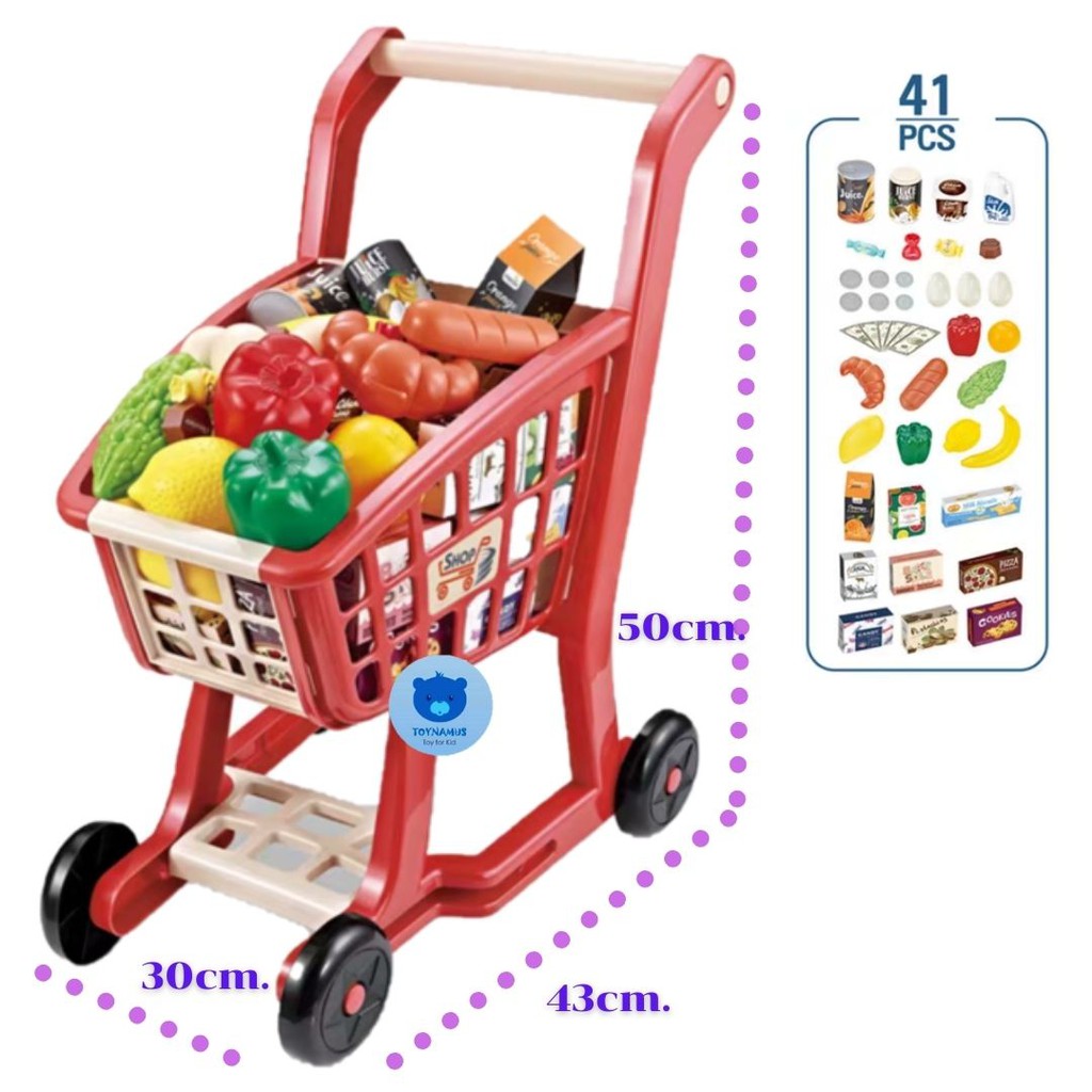 ?Hot ส่งเร็ว? Toynamus รถเข็นซุปเปอร์มาร์เก็ต พร้อมผักผลไม้ ขนม กาแฟ รวม 41 ชิ้น