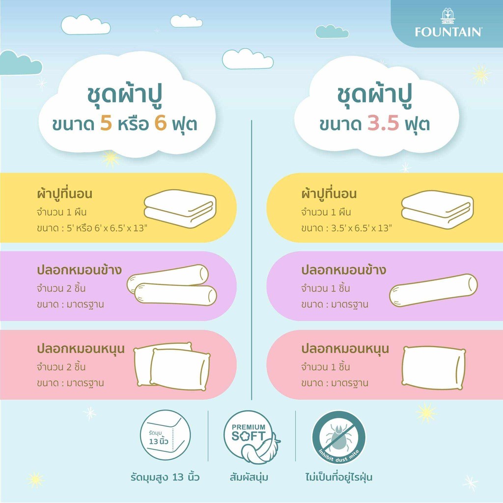 ✔ ใส่กับที่นอนได้หนาถึง 13 นิ้ว (หนาน้อยกว่านี้ก็ใส่ได้ค่ะ)