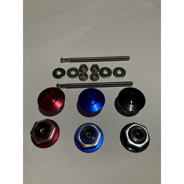 กิ๊บล็อคฝากระโปรงหน้า(กันบิน)1คู่แบบปุ่มกด3CM เสาเลสยาว10CM ช่วยให้ยึดฝากระโปรงได้แน่นขึ้น กันฝากระโปรงเปิดเมื่อรถวิ่งด้วยความเร็วสูง วัสดุเป็นอลูมิเนียมแข็งแรง ทนทาน ไม่ขึ้นสนิม มาพร้อมอุปกรณ์ครบชุด ติดตั้งง่าย ใช้ได้กับรถยนต์ทุกรุ่น