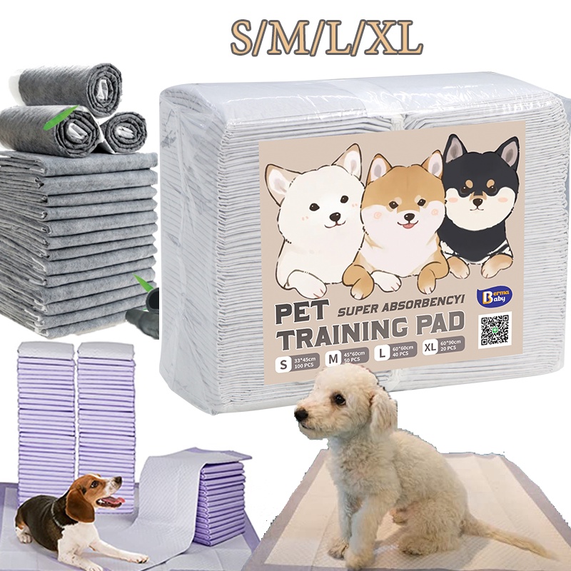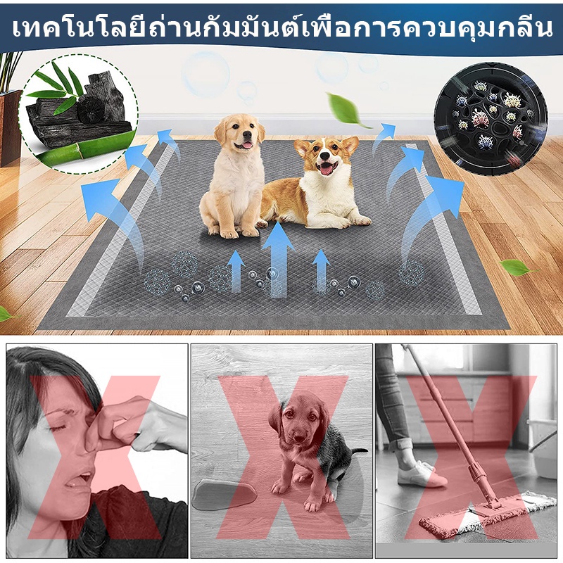 แผ่นรองฉี่สุนัข แผ่นรองฉี่แมว ต่อต้านแบคทีเรีย ถ่านหินคาร์บอน ดูดกลิ่นดี ระงับกลิ่น S-XL 100pcs