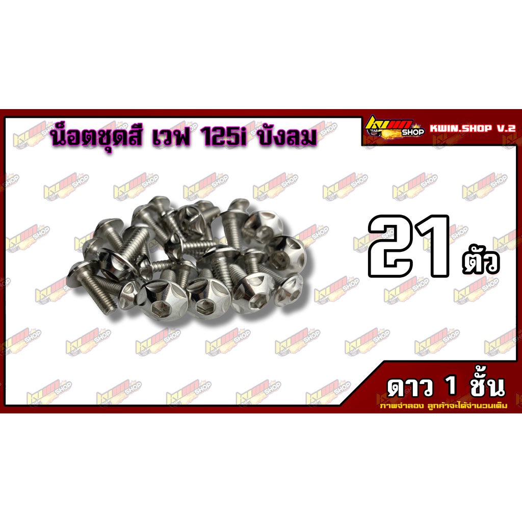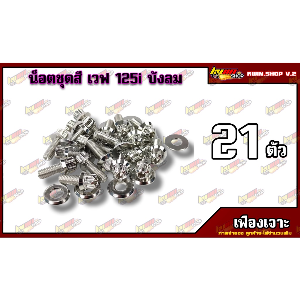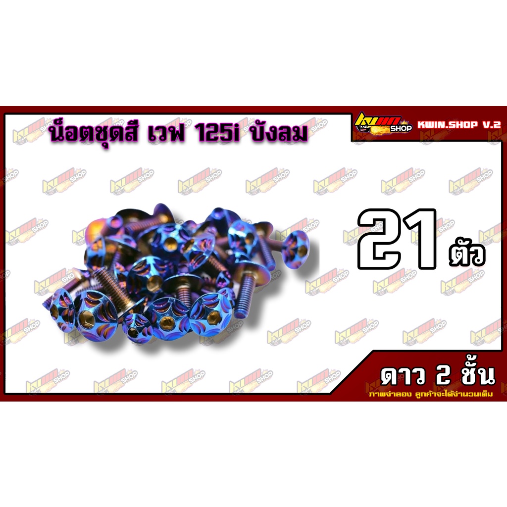 น็อตชุดสี Wave 125i บังลม (เวฟ125) (1ชุด=21 ตัว) น็อตชุดสีโนวา น็อตเฟรมเวฟ125i บังลม น็อตชุดสีเวฟ125i บังลม อะไหล่แต่งรถ