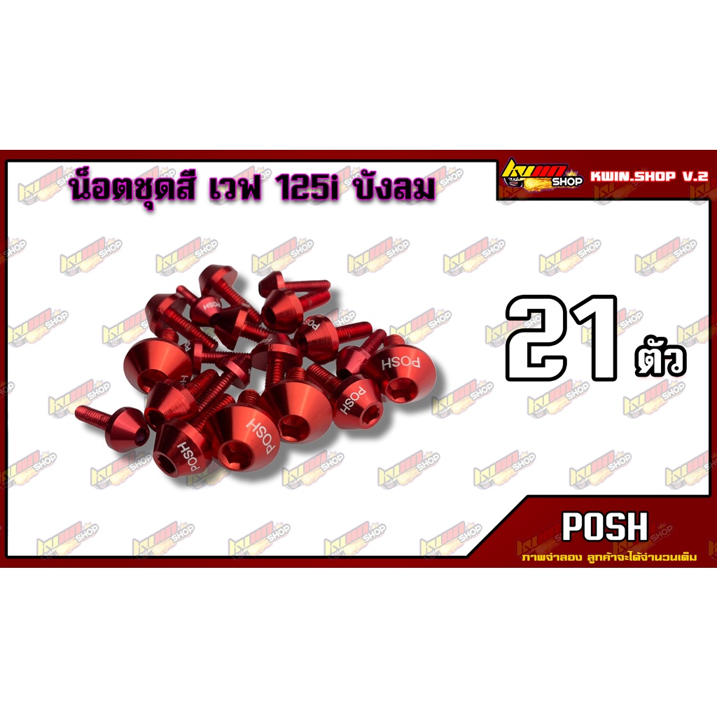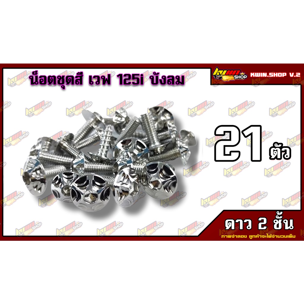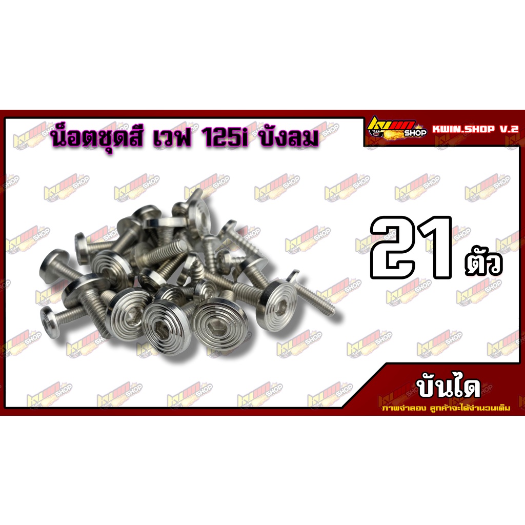 น็อตชุดสี Wave 125i บังลม (เวฟ125) (1ชุด=21 ตัว) น็อตชุดสีโนวา น็อตเฟรมเวฟ125i บังลม น็อตชุดสีเวฟ125i บังลม อะไหล่แต่งรถ