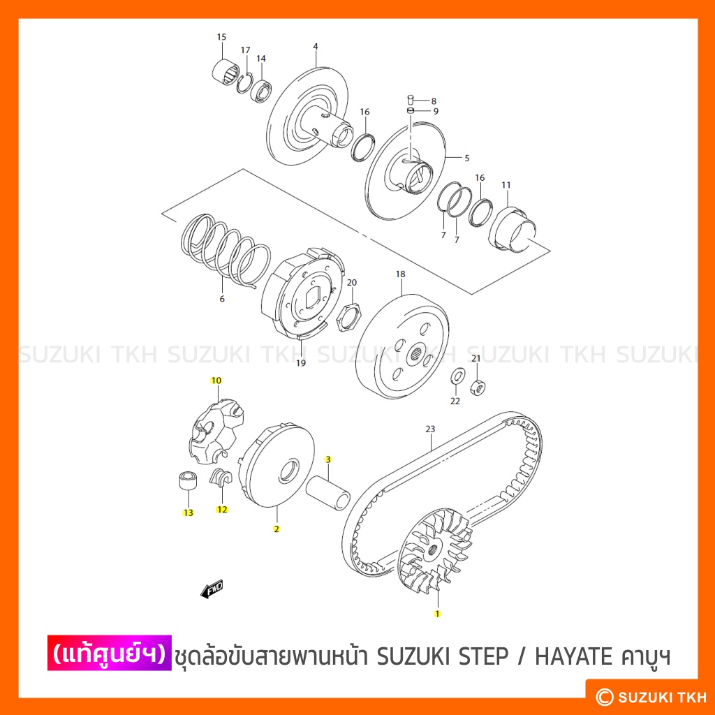 [แท้ศูนย์ฯ] ชุดล้อขับสายพานหน้า SUZUKI STEP 125 / HAYATE 125 คาบูฯ