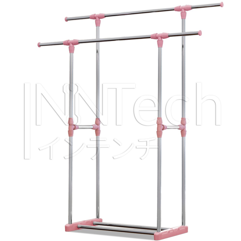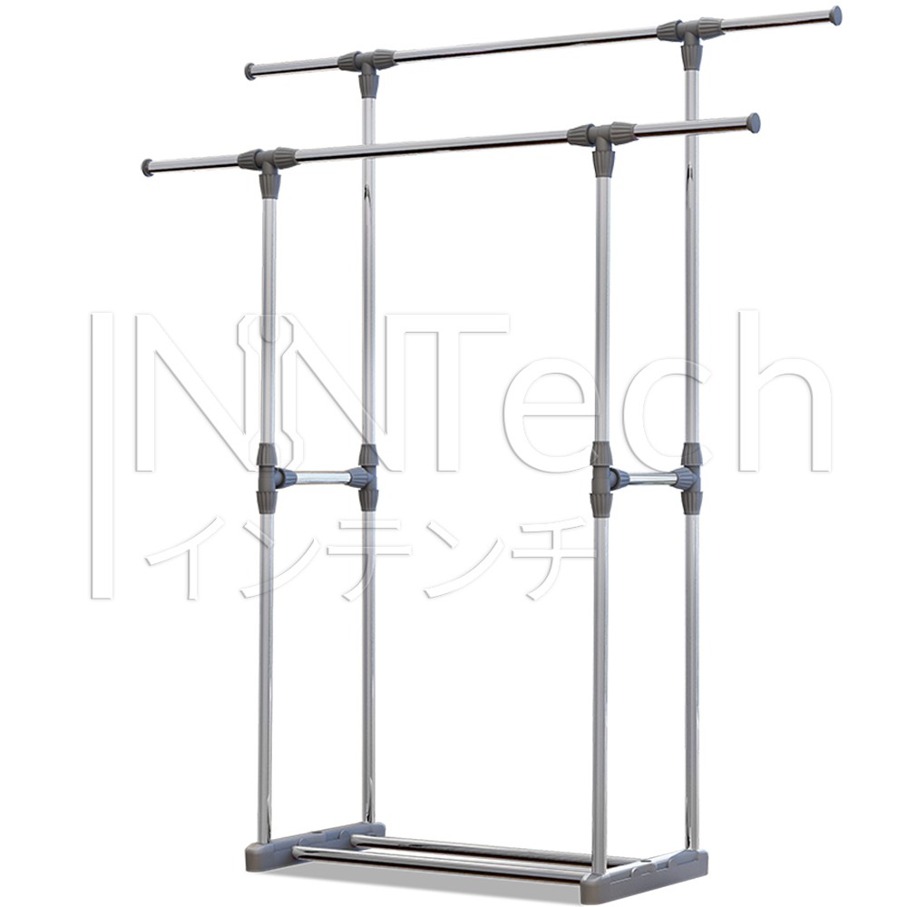 InnHome ราวตากผ้า 2 ชั้น ราวบาร์คู่ พร้อมชั้นวางของ ปรับความยาวและความสูงได้
