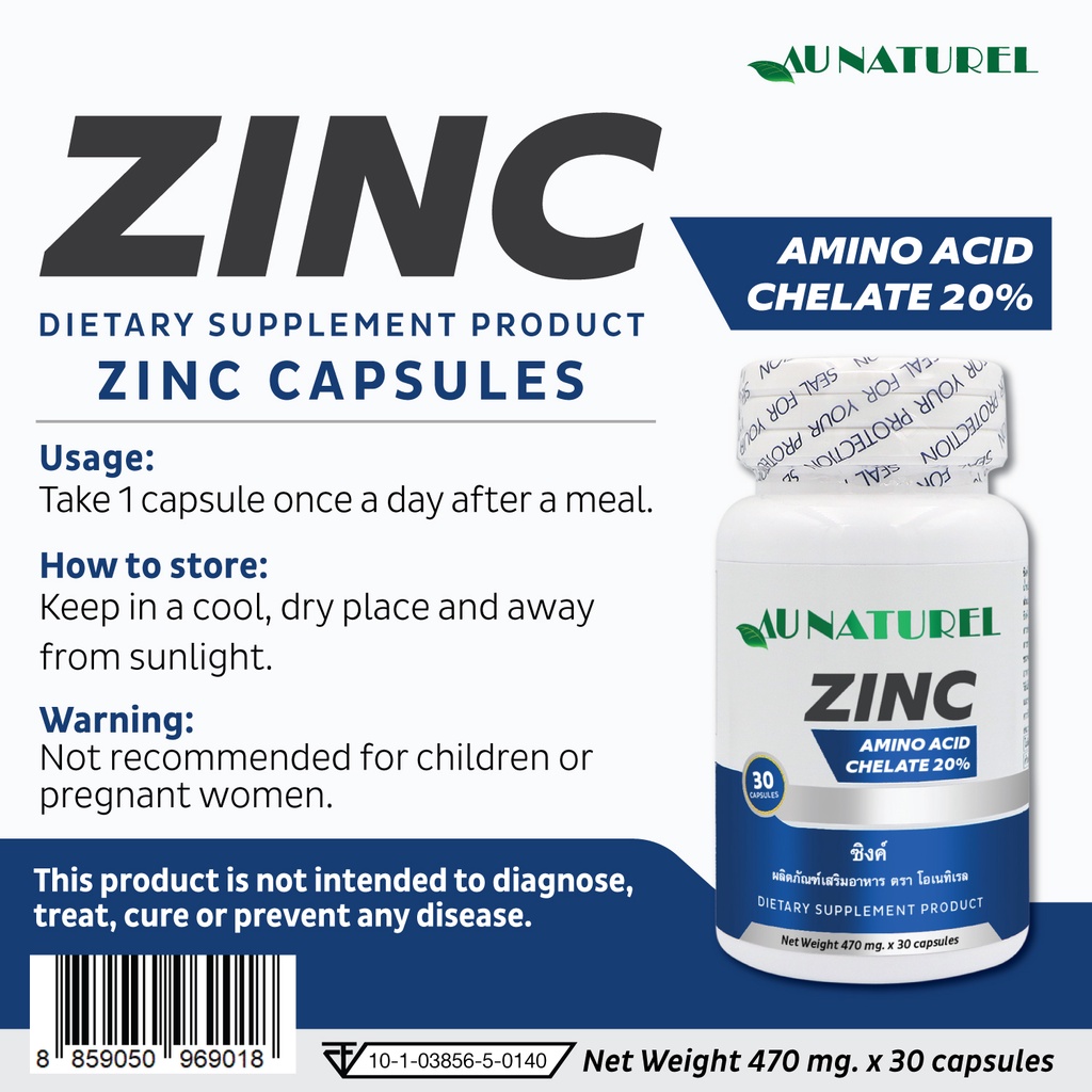 [แพ็ค 3 ขวด สุดคุ้ม] ซิงค์ โอเนทิเรล Zinc AU NATUREL Zinc แร่ธาตุสังกะสี สังกะสี