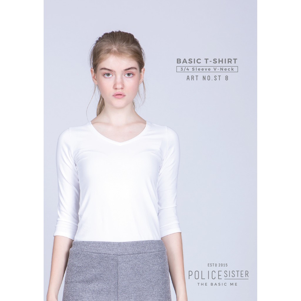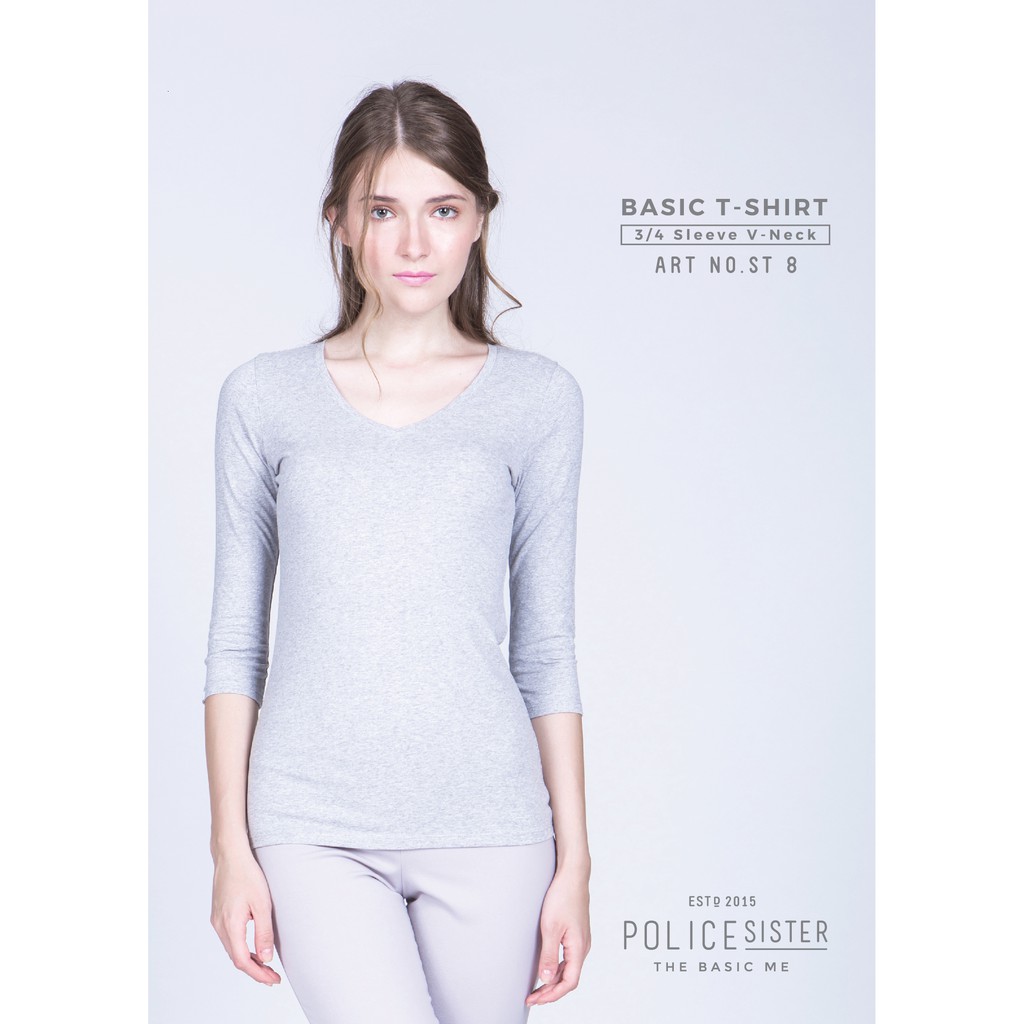 เสื้อแขนสามส่วน คอวี Police Sister (ขาว ดำ เทา) SB8