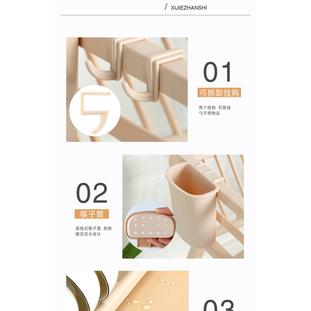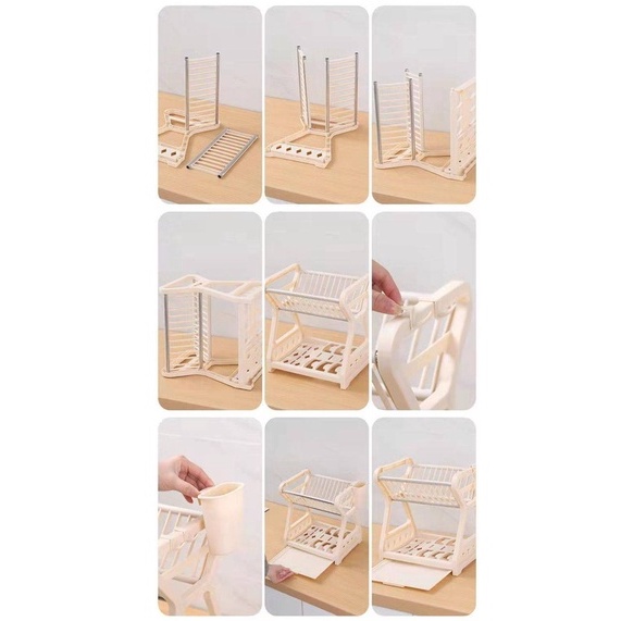 ชุดที่คว่ำจาน 2 ชั้น วัสดุ PP คุณภาพสูง + สแตนเลส ขนาดสินค้า 24x31x33cm