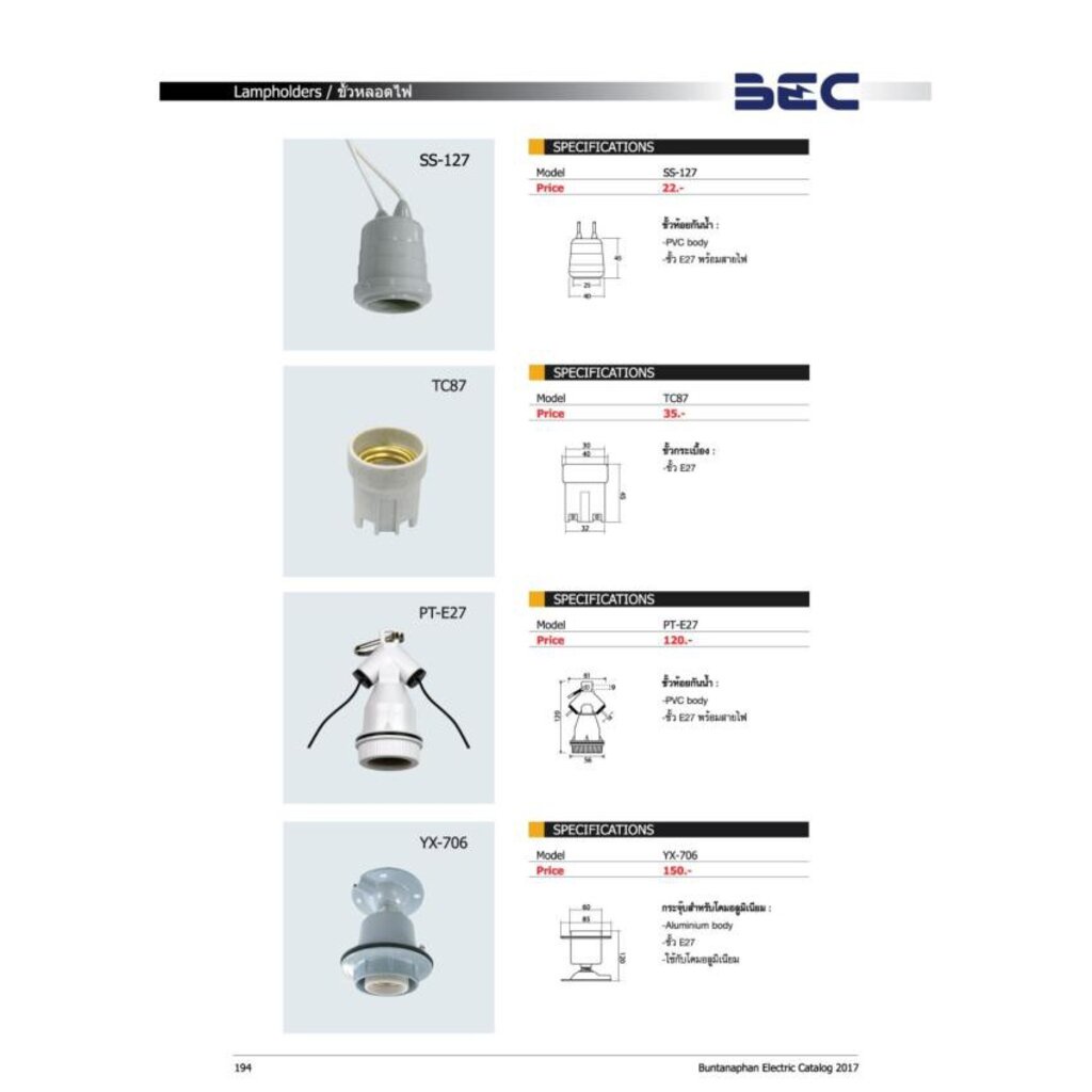 BEC PT-E27 ขั้วห้อยหลอดไฟกันน้ำ สำหรับขั้ว E27
