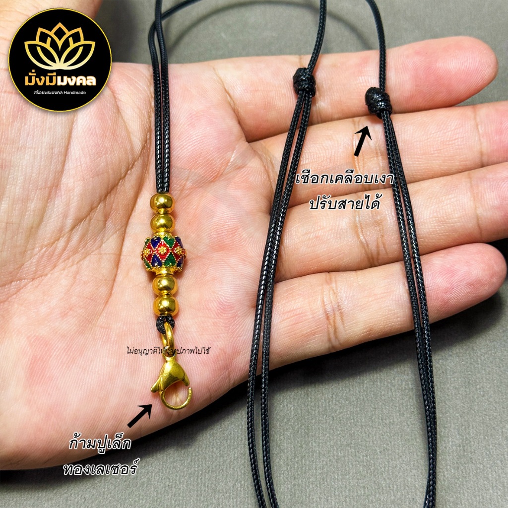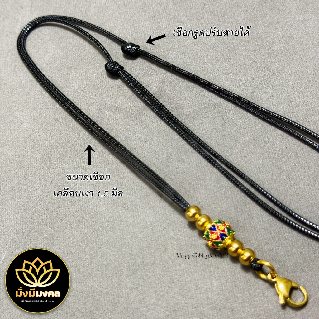 [PCL] มั่งมีมงคล สร้อยพระ เชือกเคลือบเงาขนาด 1.5 มิล ก้ามปูทองเลเซอร์ ห้อยพระ 1 องค์ สายปรับได้ หญิงชาย