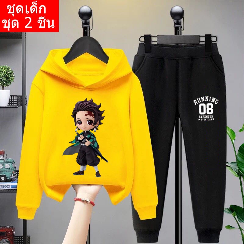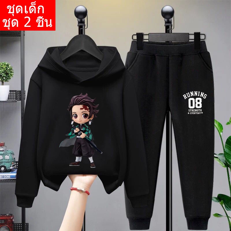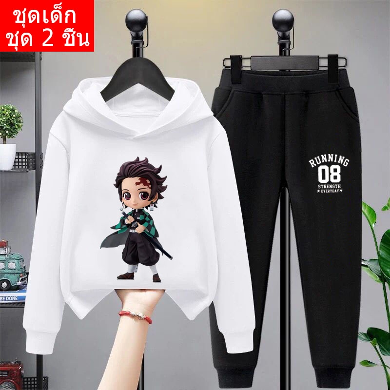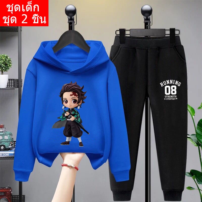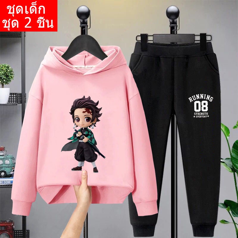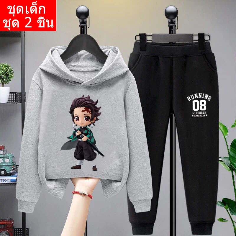*สินค้าในไทย*K-2206-LONG+TKU355 ชุดเซทเด็ก 2 ชิ้นเสื้อกันหนาวมีฮูด+กางเกงขายาว สกรีนลายการ์ตูนน่ารักใส่ได้ทั้งหญิงและชาย